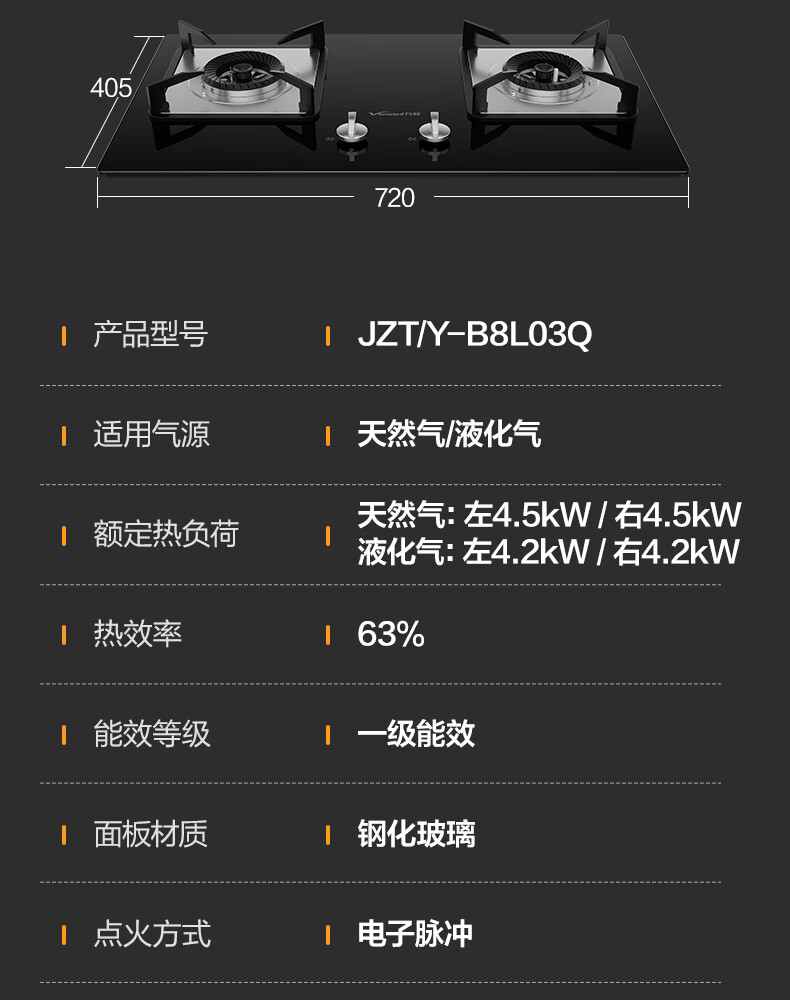 IBF艾博菲万和JZT-B8L03Q-12T(天然气)_燃气灶台式灶_4.5Kw大火力_聚能_台嵌两用【K】