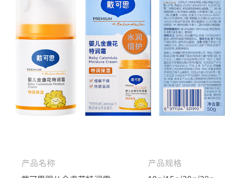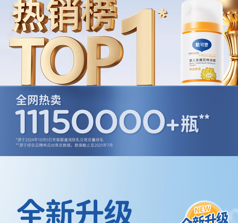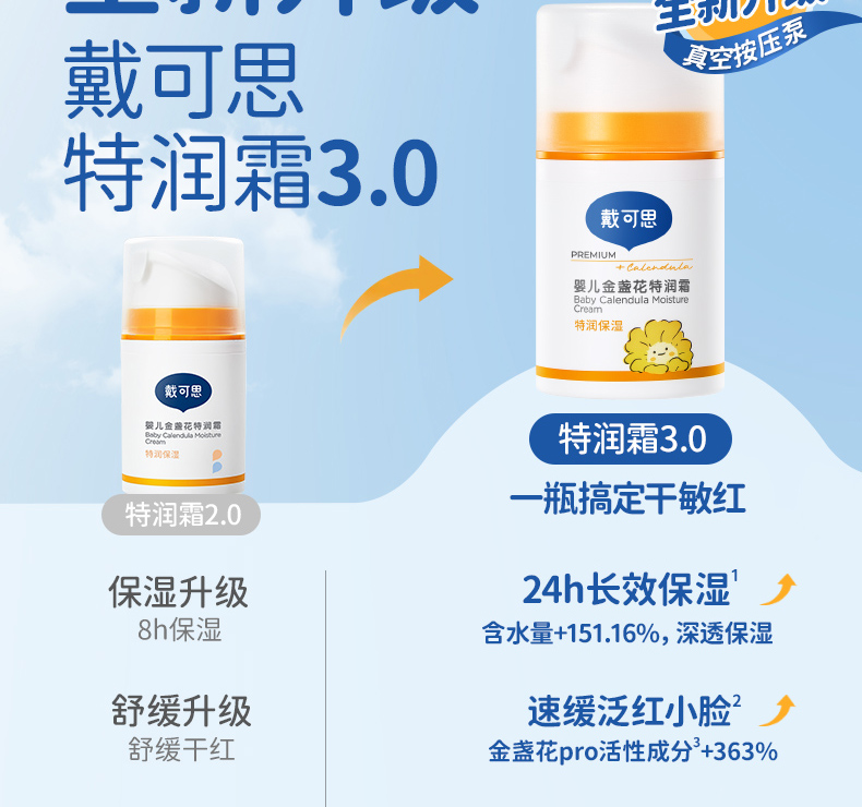 戴可思婴儿金盏花特润面霜24h补水宝宝早晚霜润肤乳Pro25年第二代金盏花升级款真空按压泵3.0版♥
