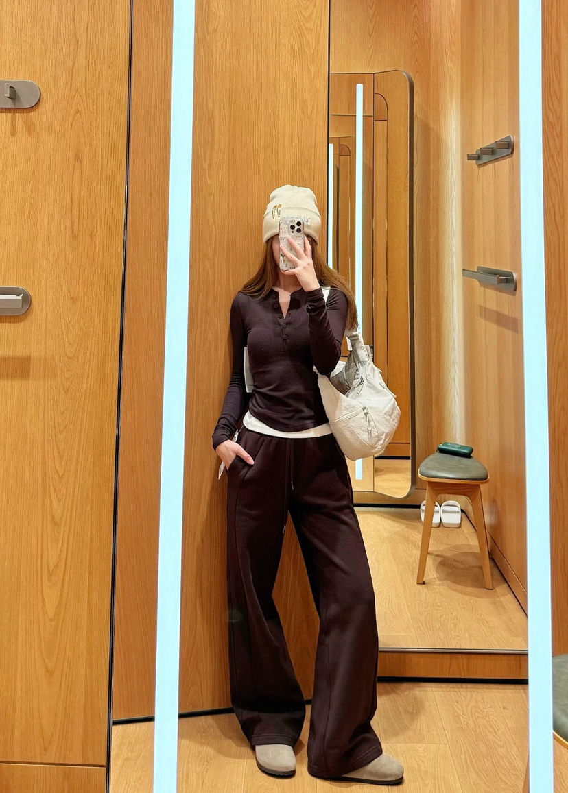1124-4 爆款 lu Scuba系列 女士中腰加绒阔腿裤 休闲运动长裤