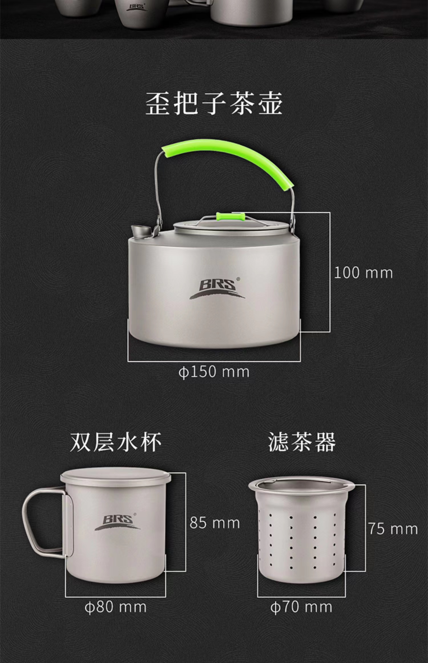 BRS-TC02 户外钛茶具纯钛99.8%便捷收纳钛壶