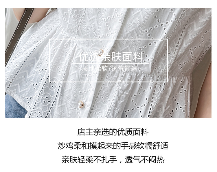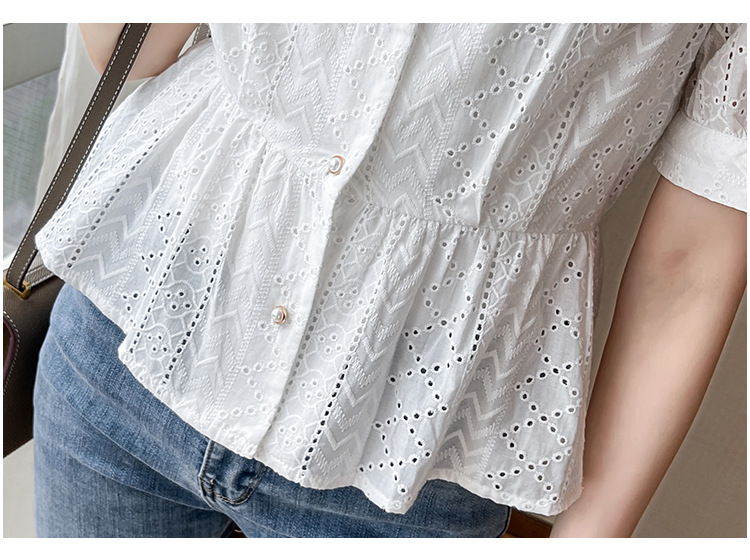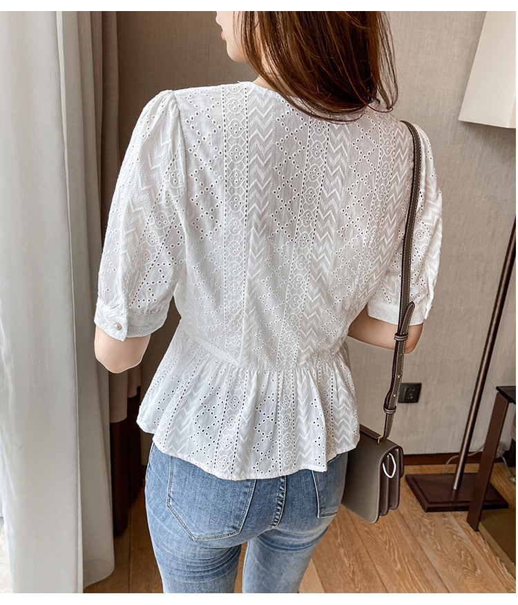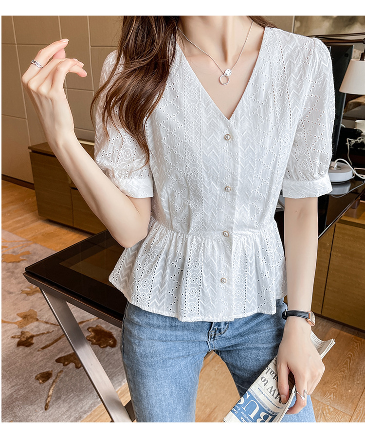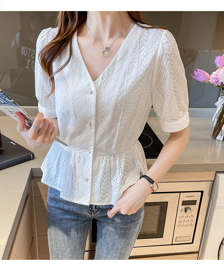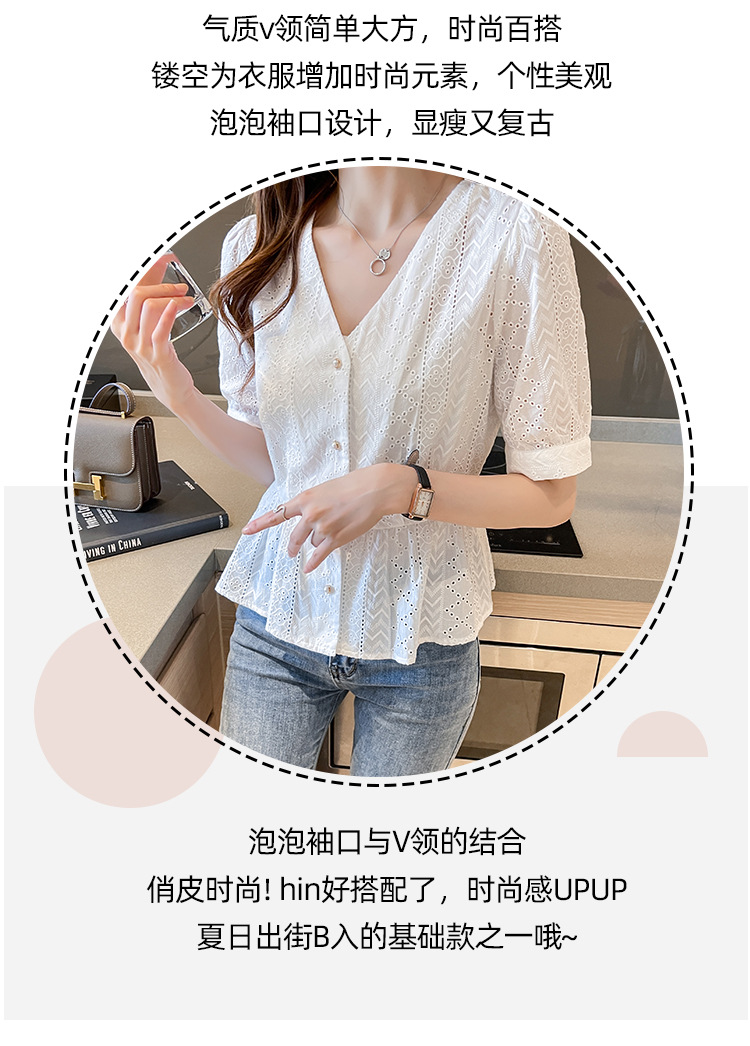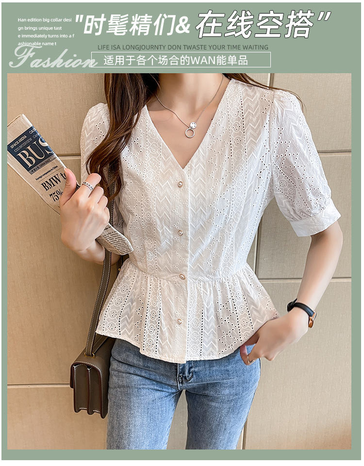 新款短袖,韩版刺绣清新小衫v领棉布衬衫KQL-6812