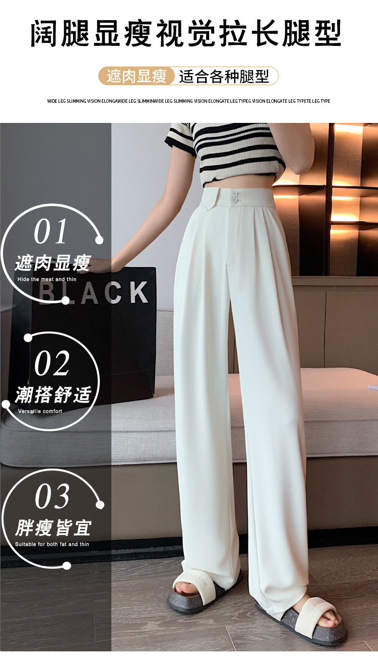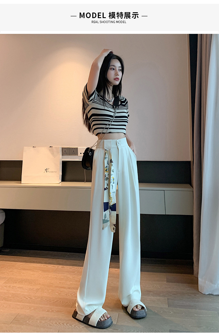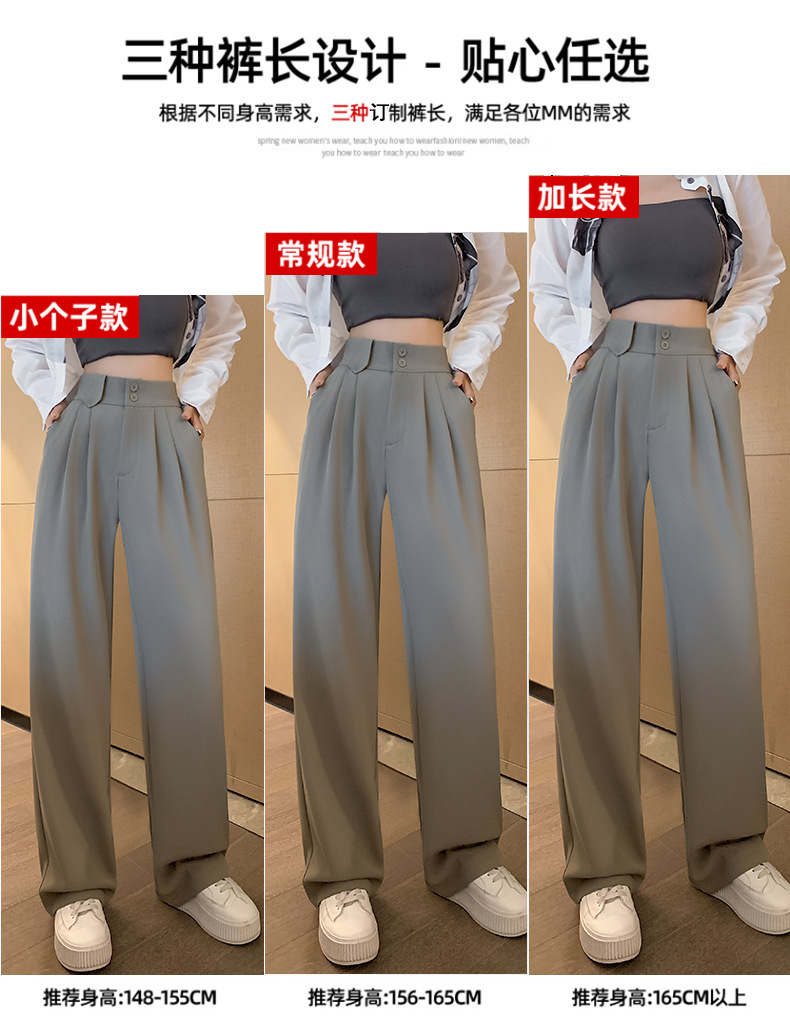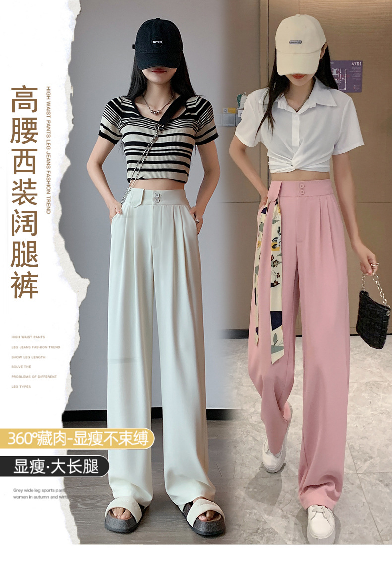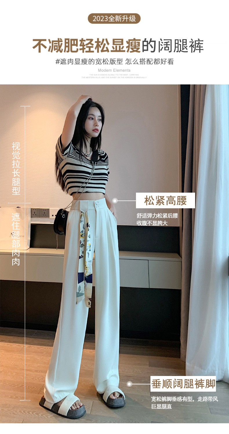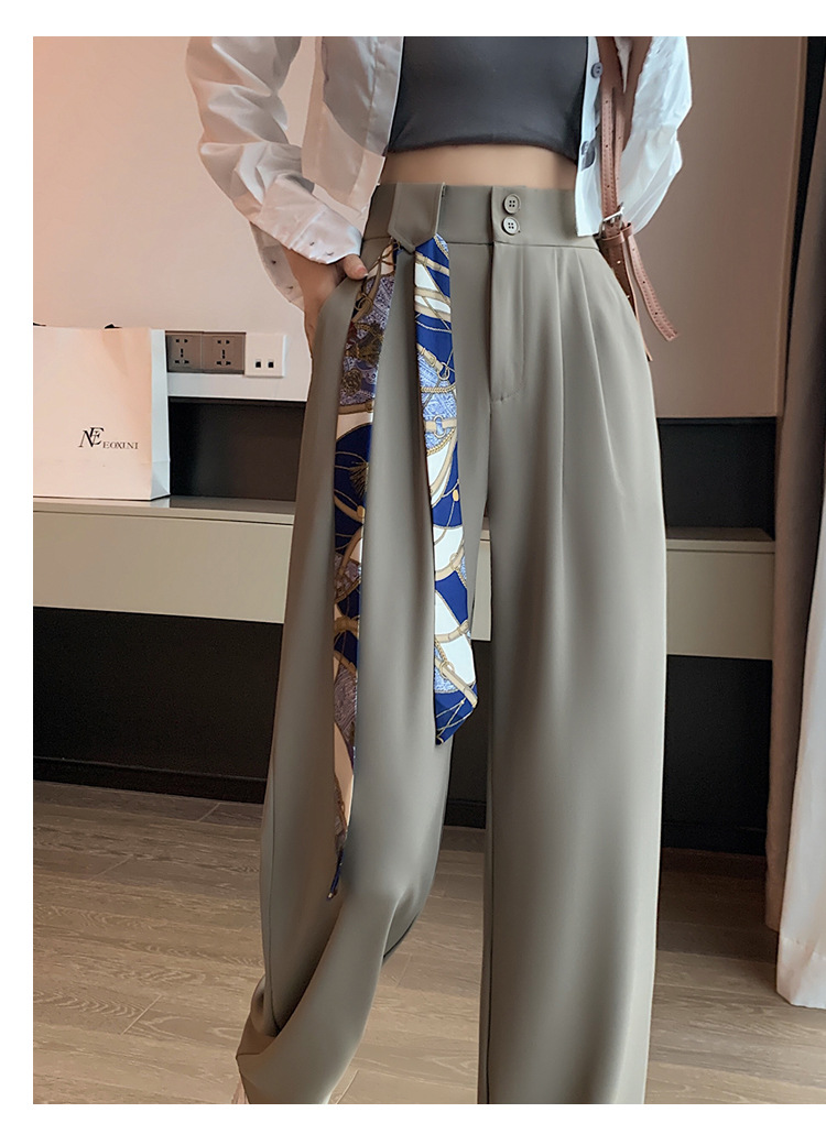 送彩色丝巾【窄版雪纺西装阔腿西裤】夏季2023女款高腰显瘦百搭休闲拖地垂感梨形身材西装裤