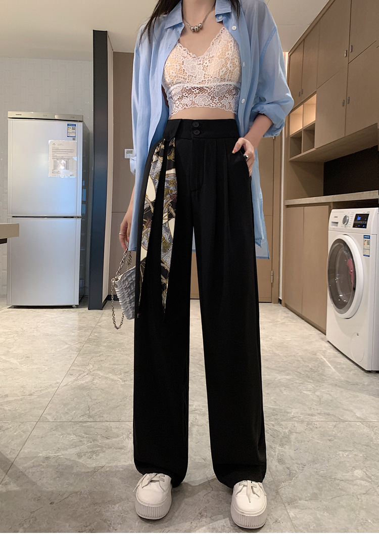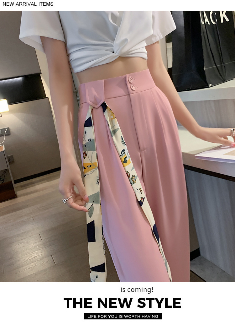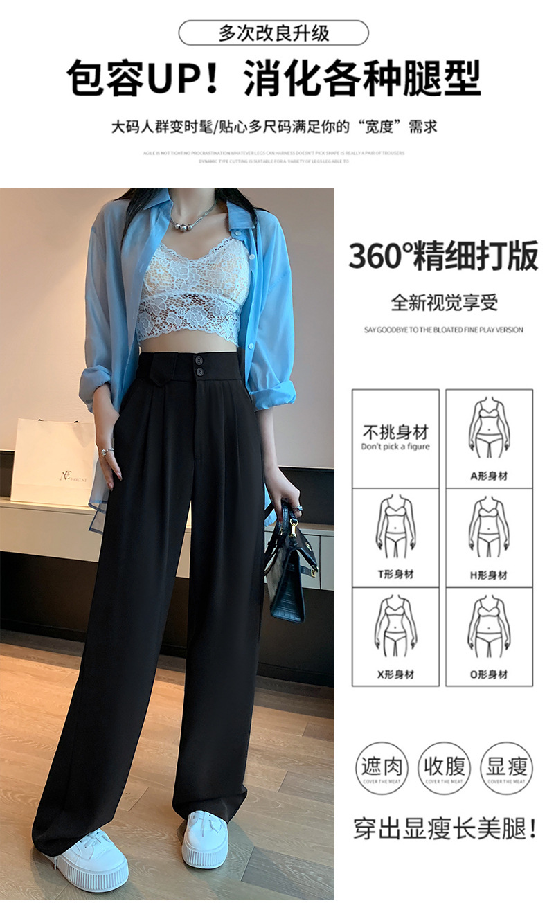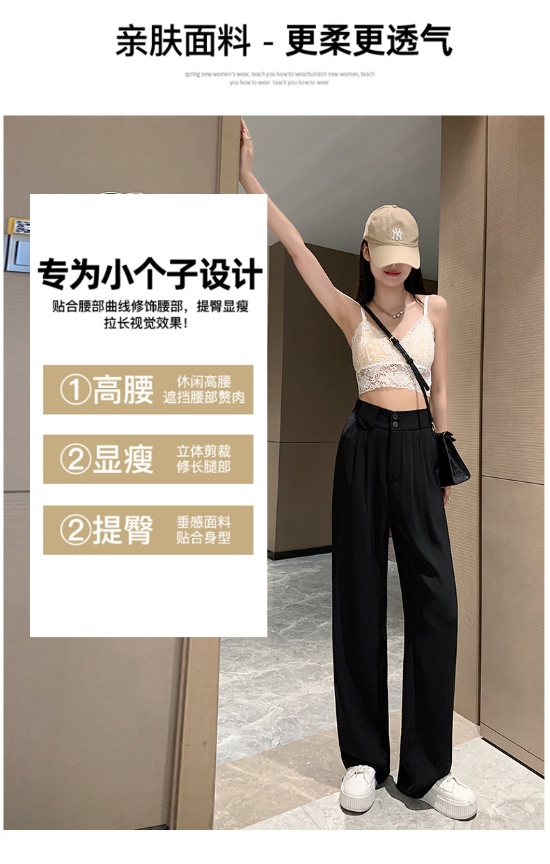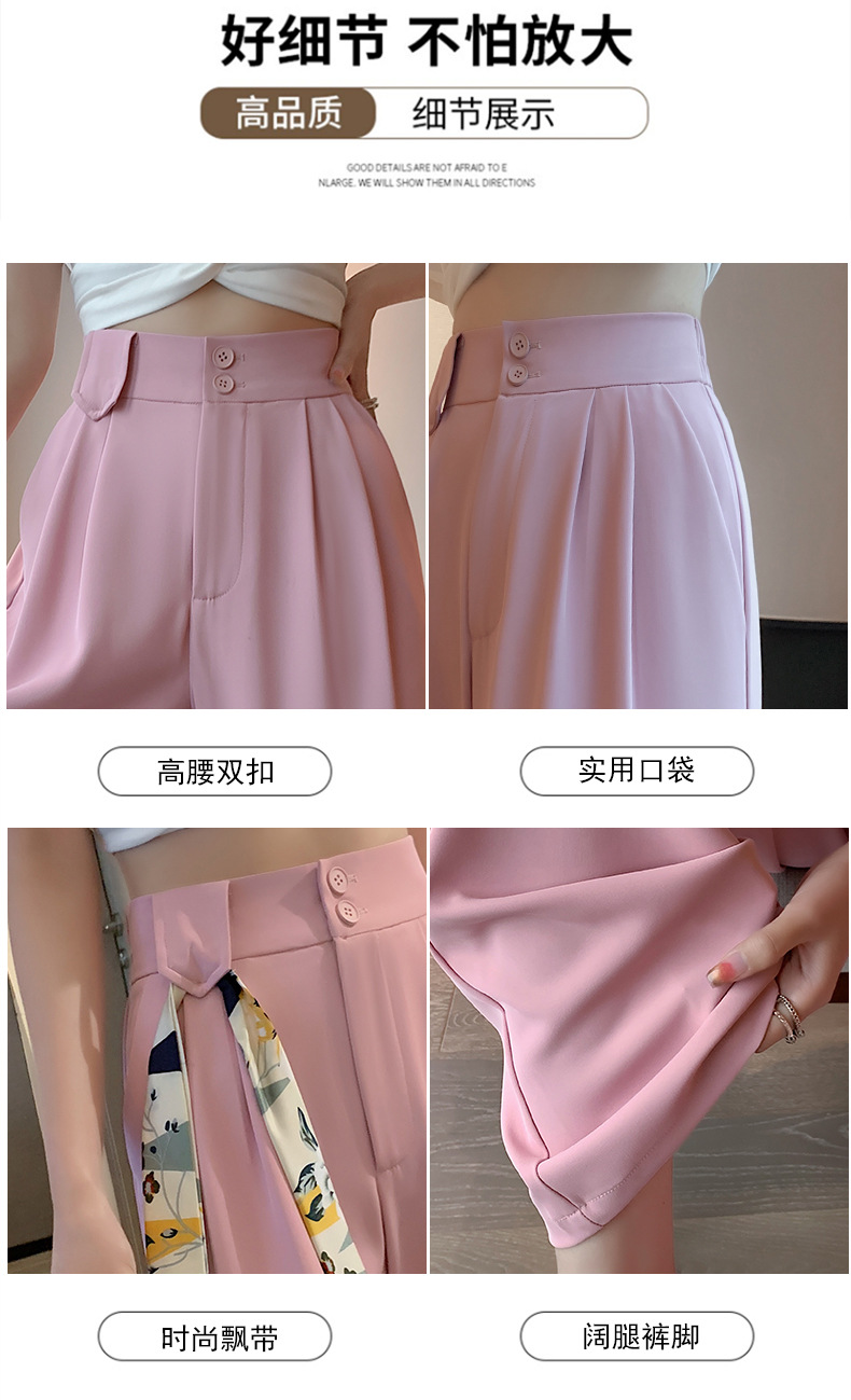 送彩色丝巾【窄版雪纺西装阔腿西裤】夏季2023女款高腰显瘦百搭休闲拖地垂感梨形身材西装裤