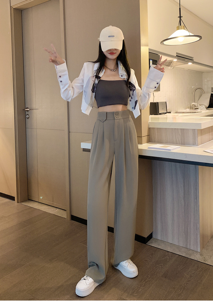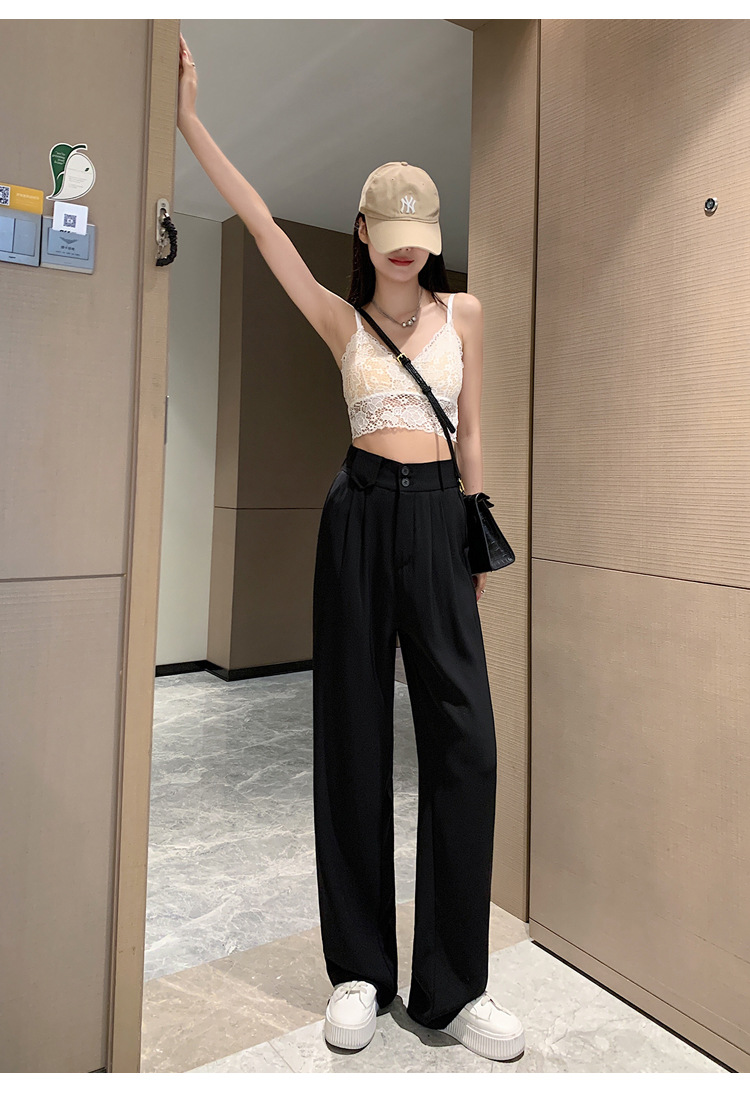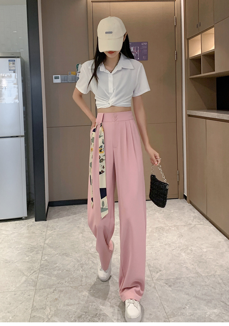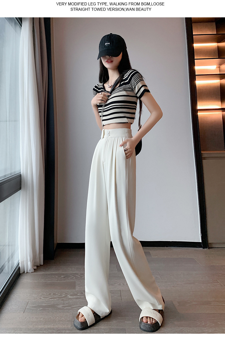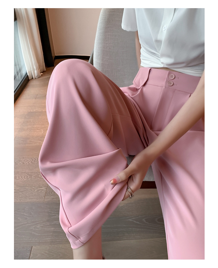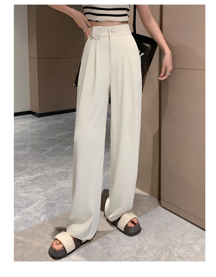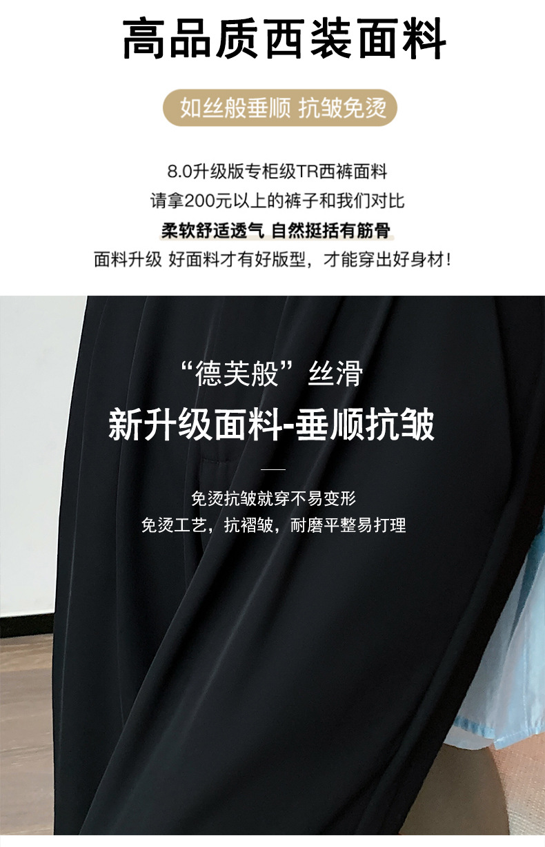 送彩色丝巾【窄版雪纺西装阔腿西裤】夏季2023女款高腰显瘦百搭休闲拖地垂感梨形身材西装裤