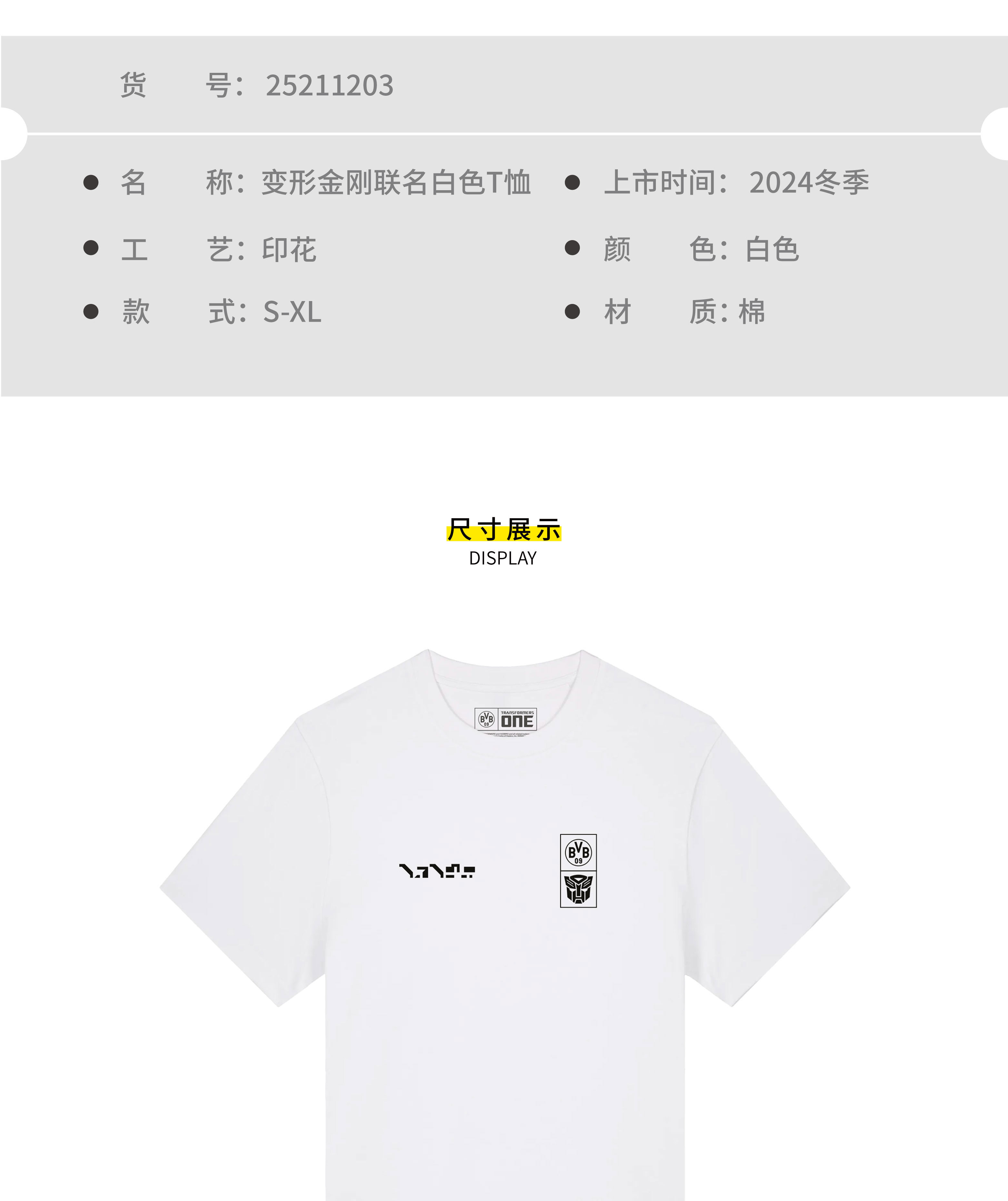 【官方正版】多特蒙德足球俱乐部|BVB变形金刚联名白色T恤
