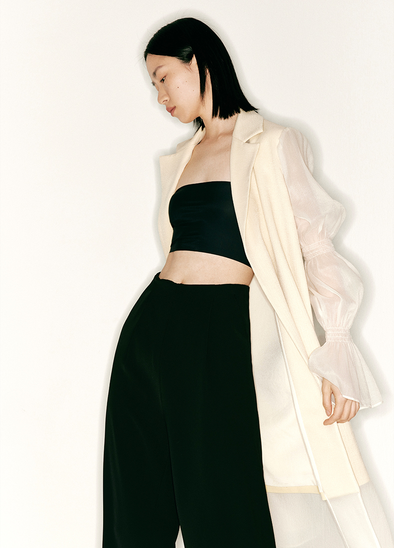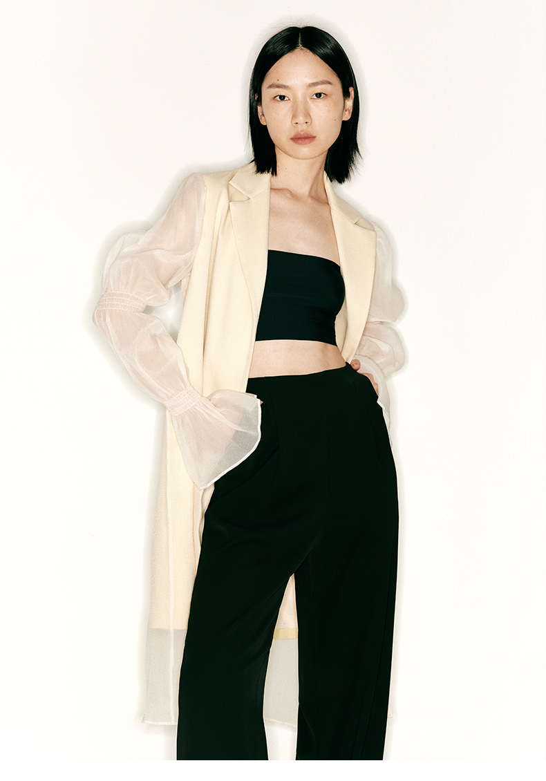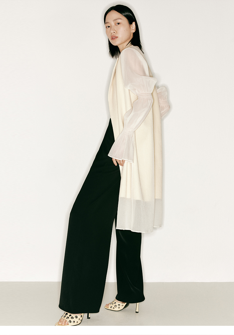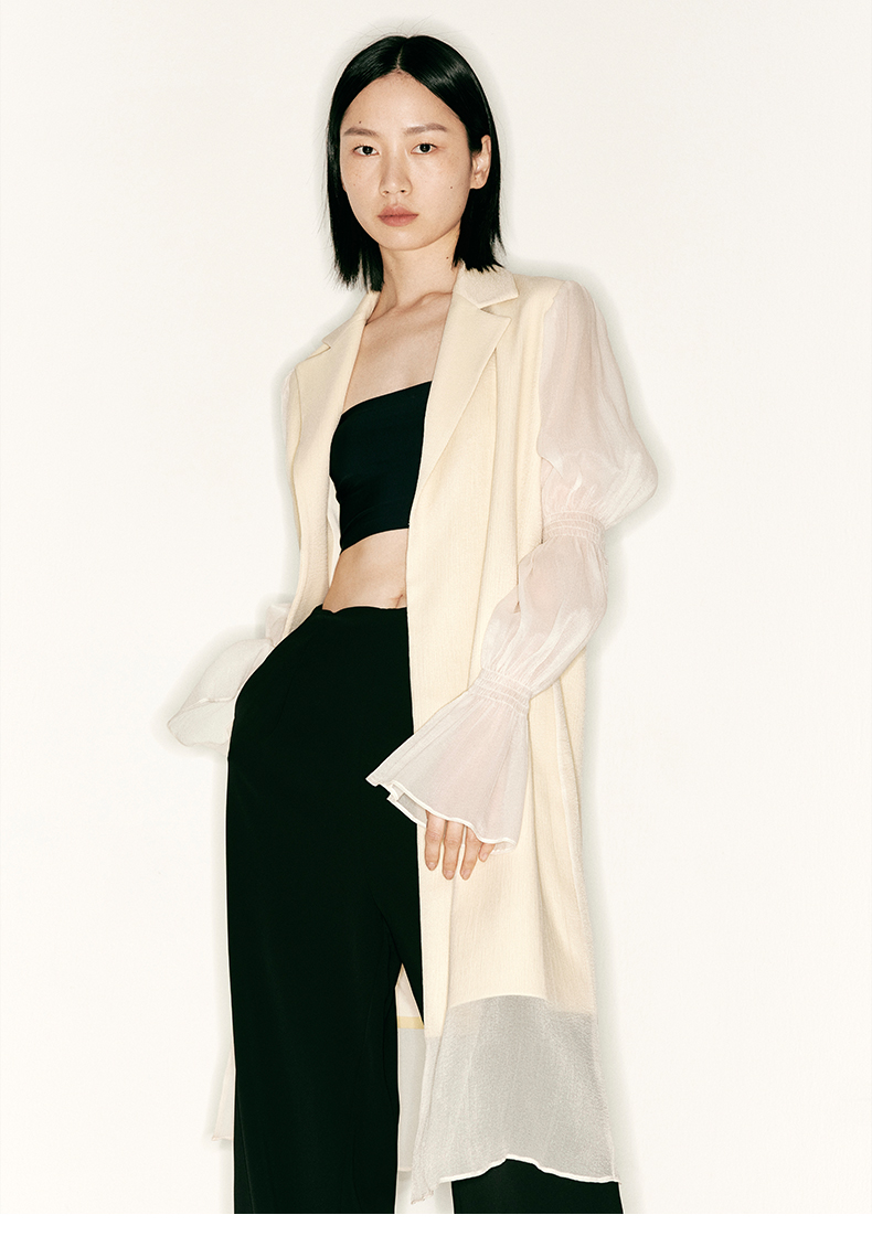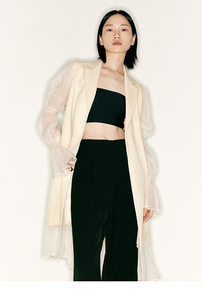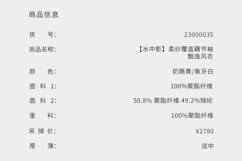 【水中影】柔纱覆盖藕节袖飘逸风衣/23000035