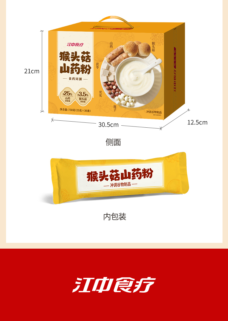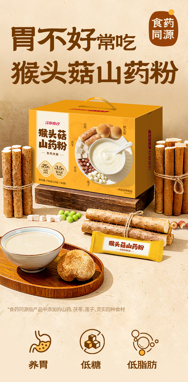 江中食疗 猴头菇山药粉375g 焦作铁棍山药养胃粉老年人滋补营养早餐代餐 2025年11月生产/保质期12个月