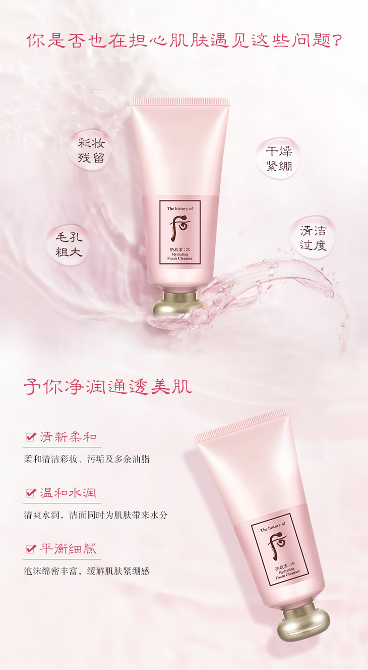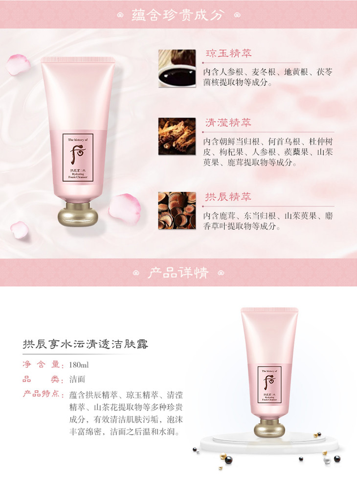 Whoo后拱辰享水沄水妍清透洁肤露 洗面奶 泡沫温和缓解肌肤紧绷 180ml 泡沫绵密丰富