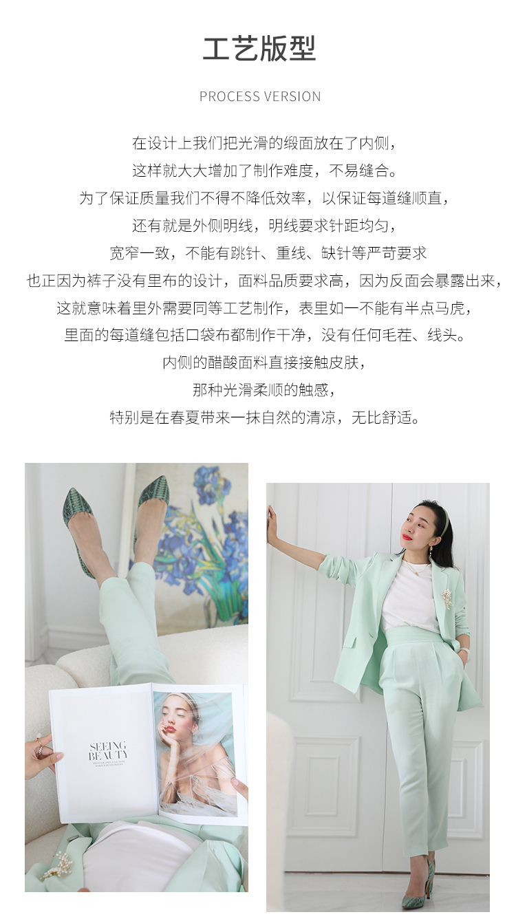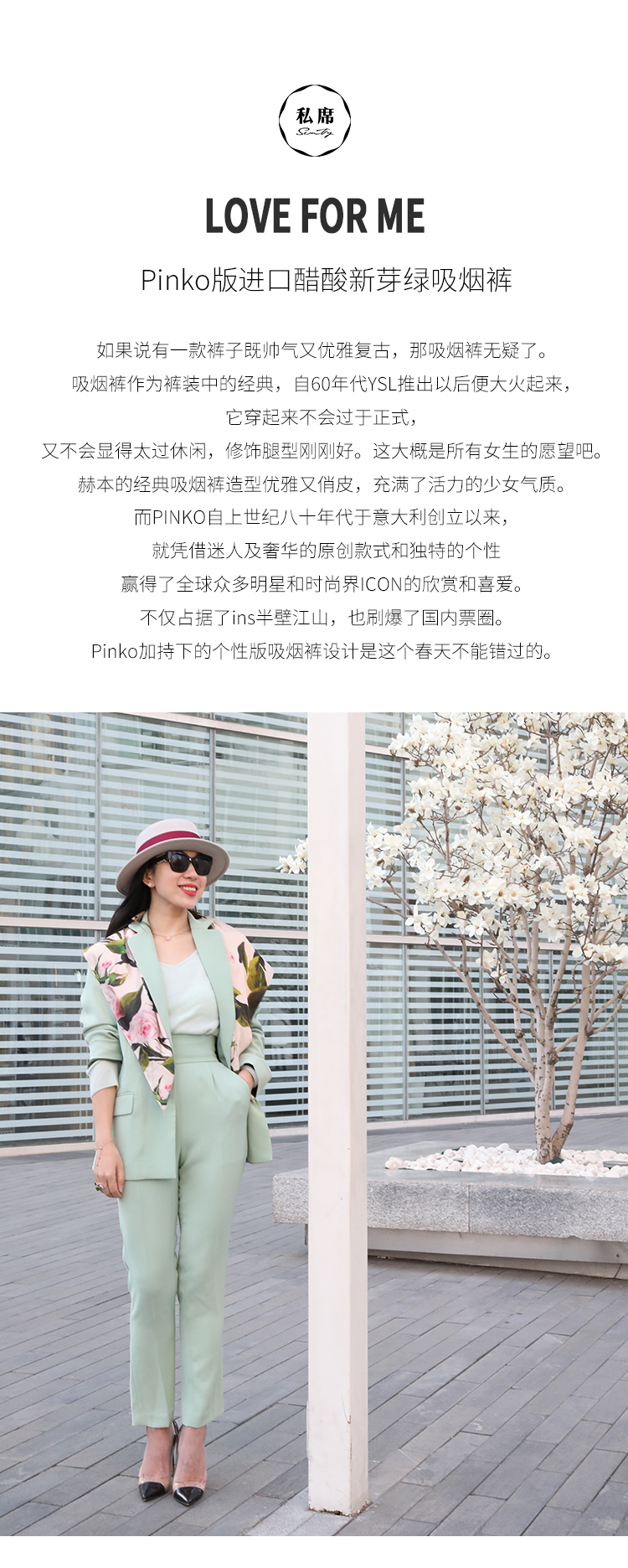 纯露节¥999送· P*nko版进口醋酸新芽绿吸烟裤