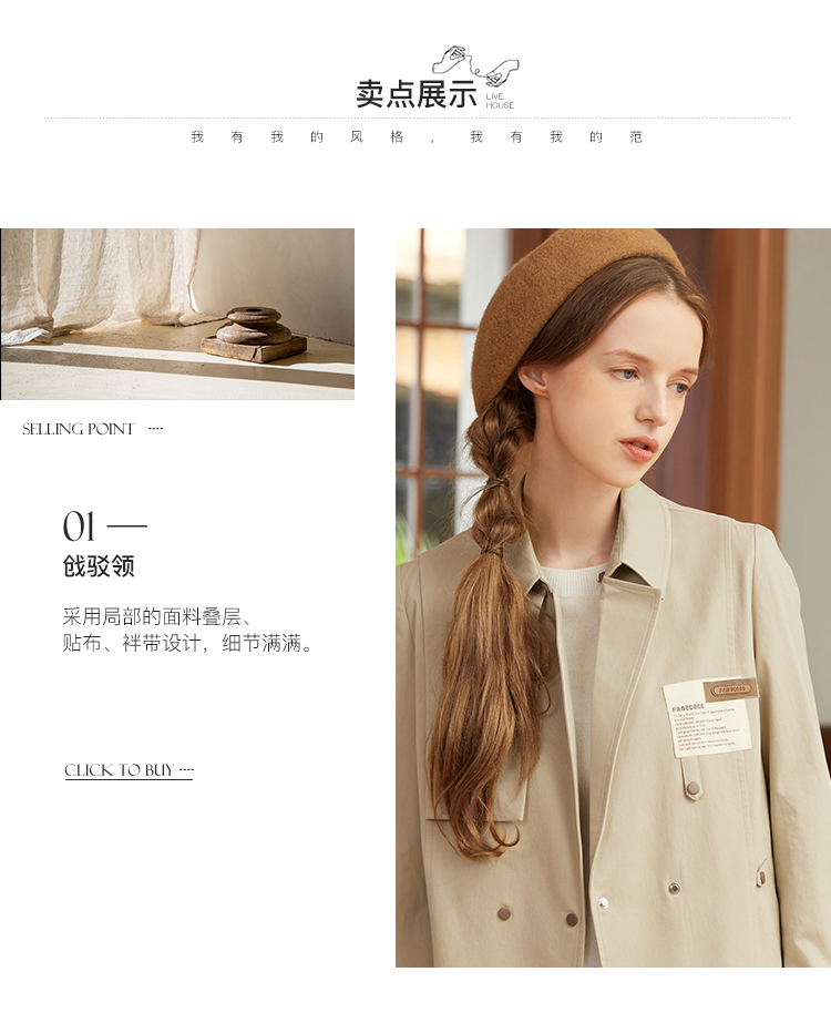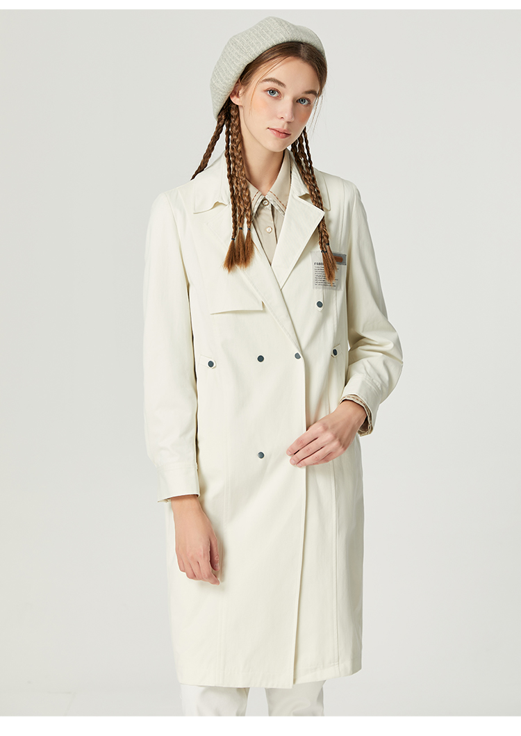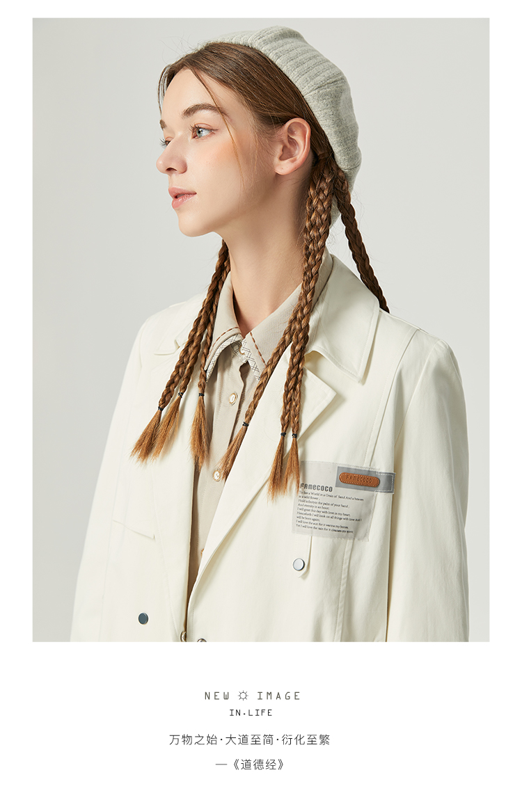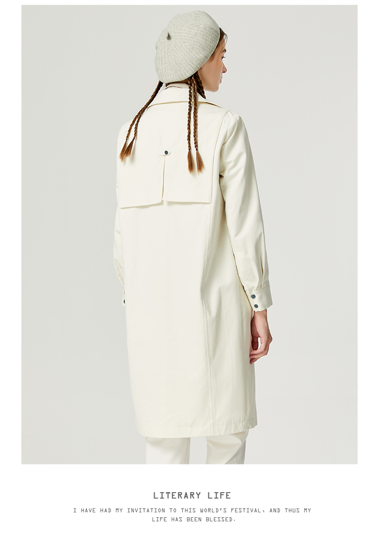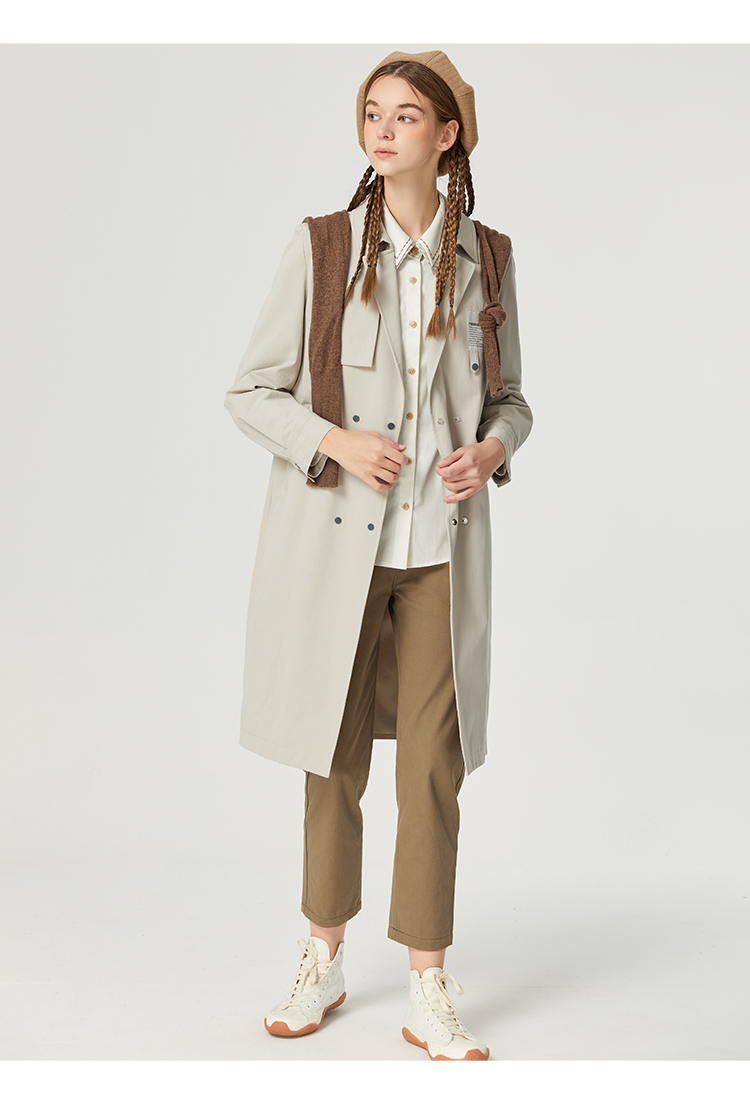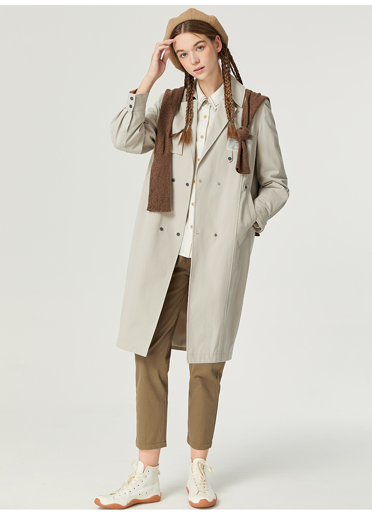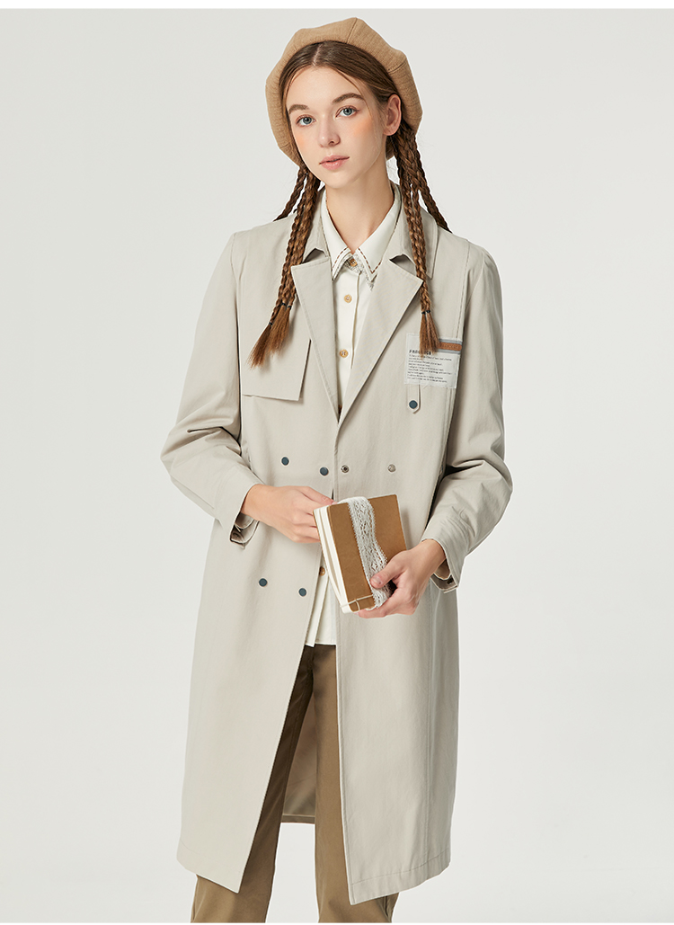 Famecoco范可儿卡其色女士风衣秋季纯棉长款外套高级气质F225AV002