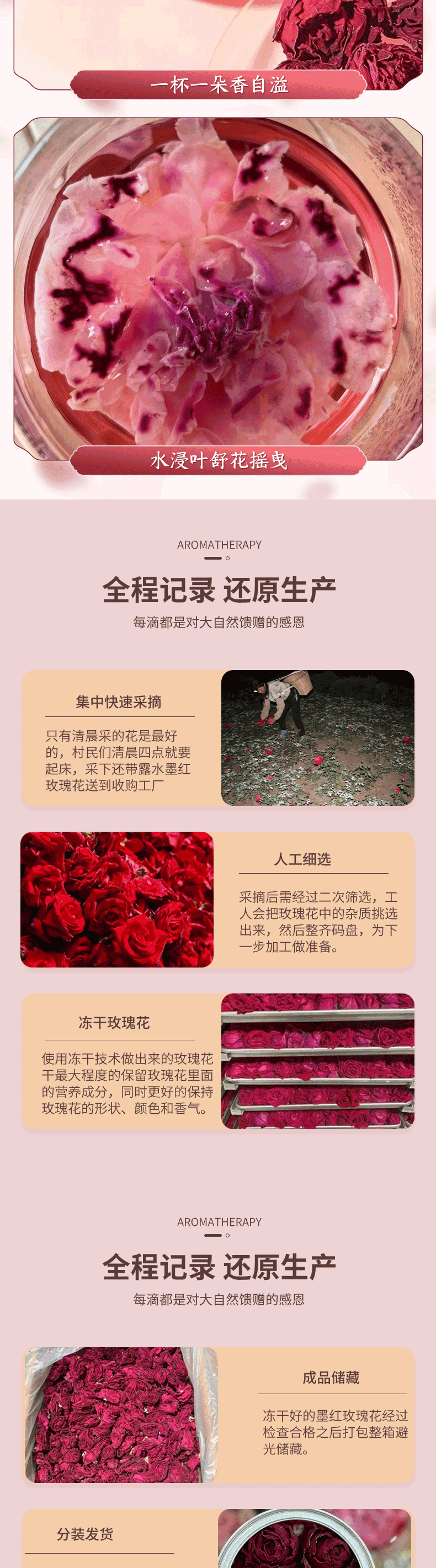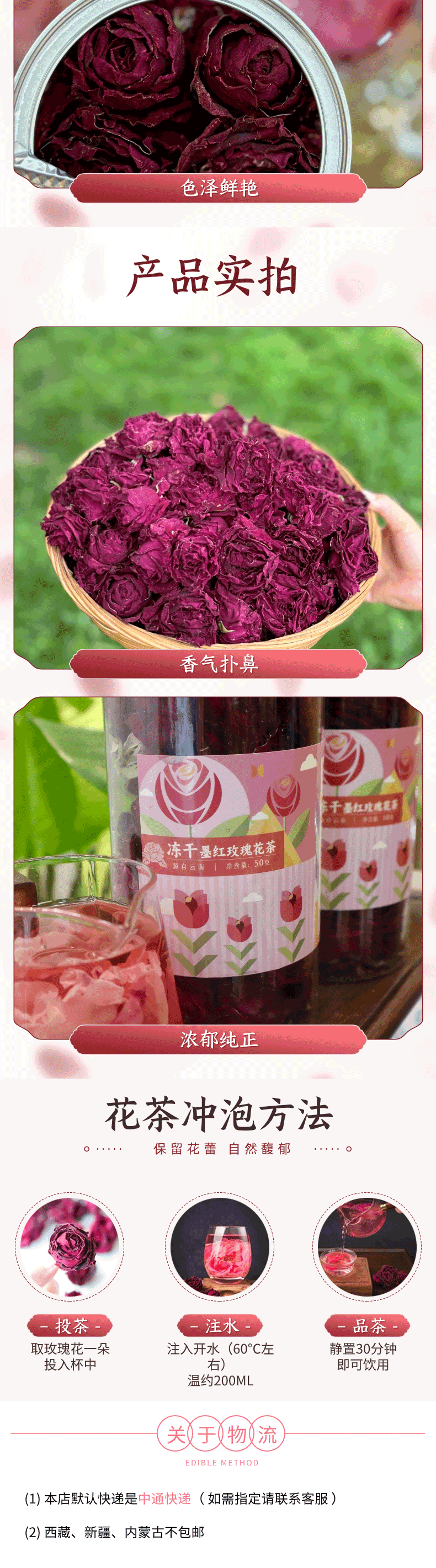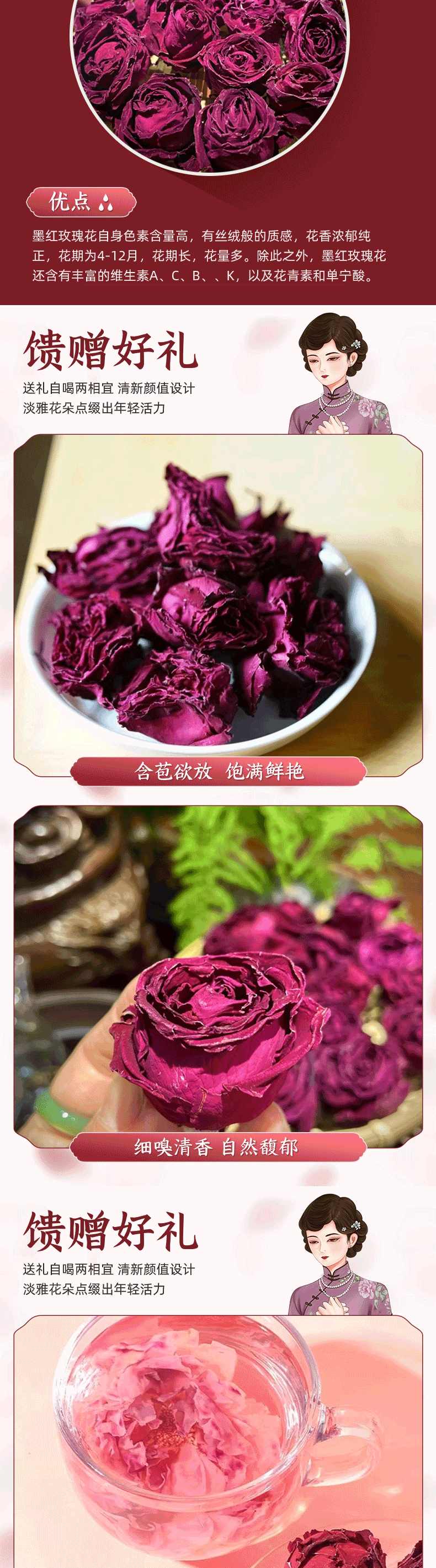 【产品规格】墨红玫瑰花茶50g/瓶(35-40朵左右)