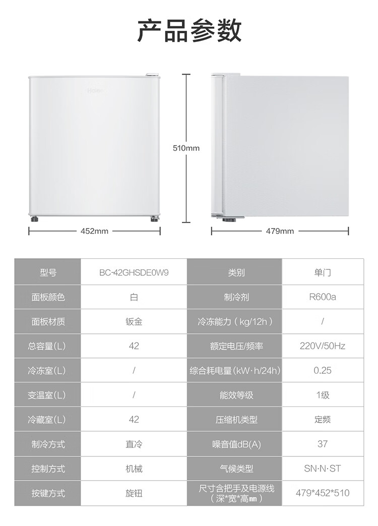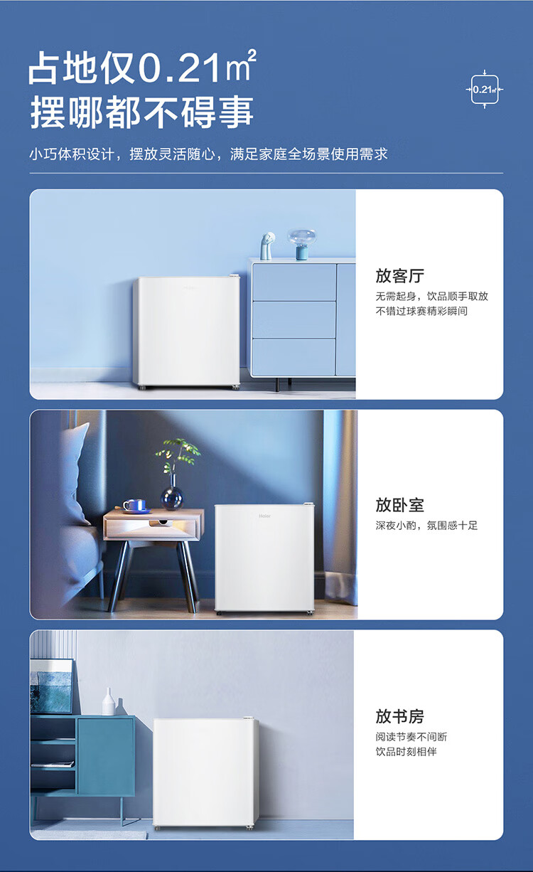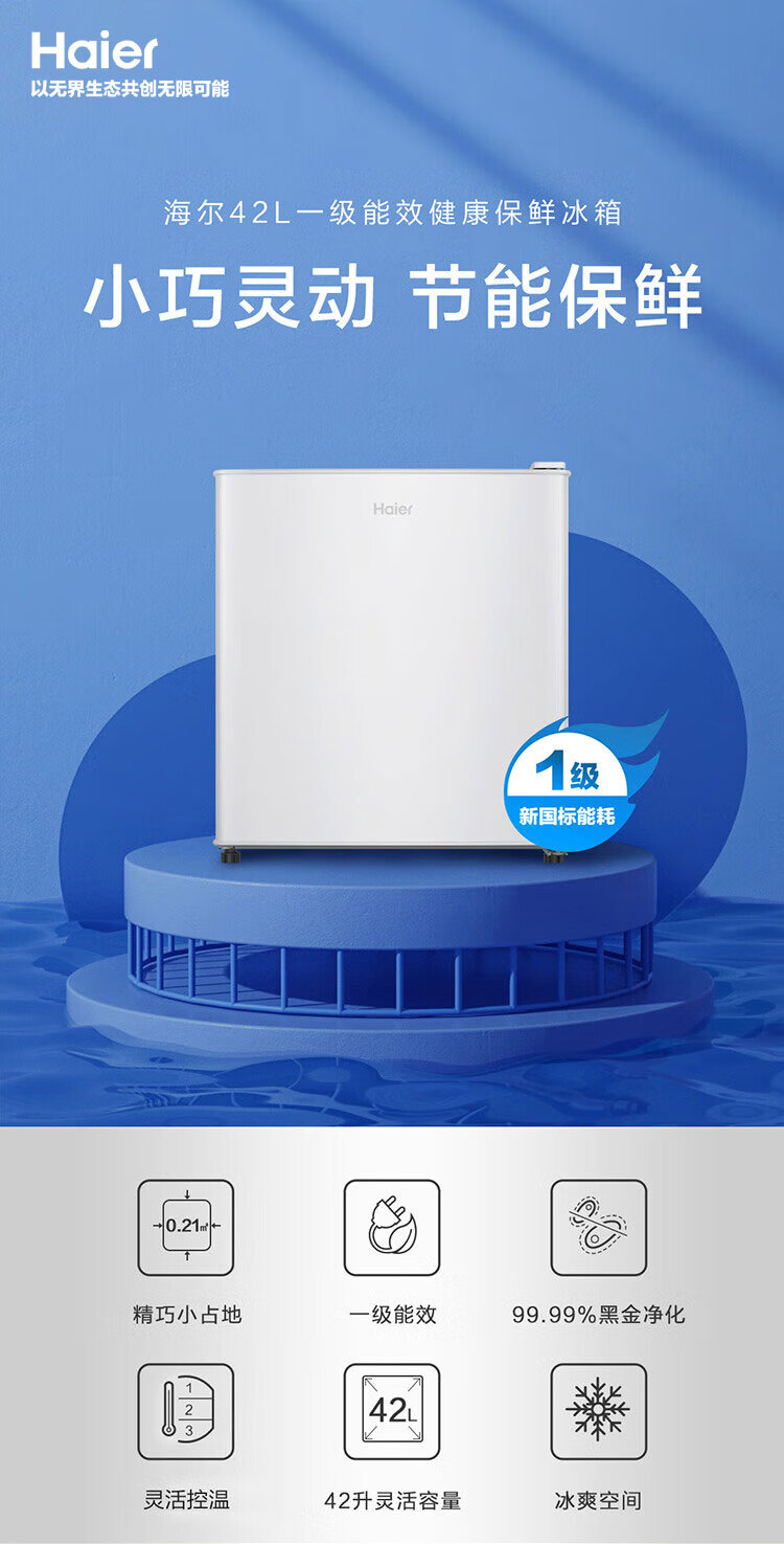 海尔42升单门电冰箱一级能效迷你小户型家用租房宿舍办公室节能省电低音微型冷藏2人可用