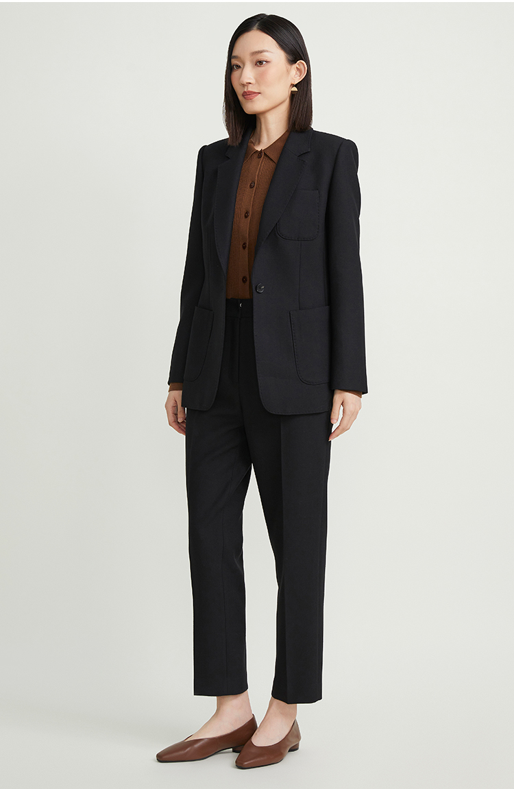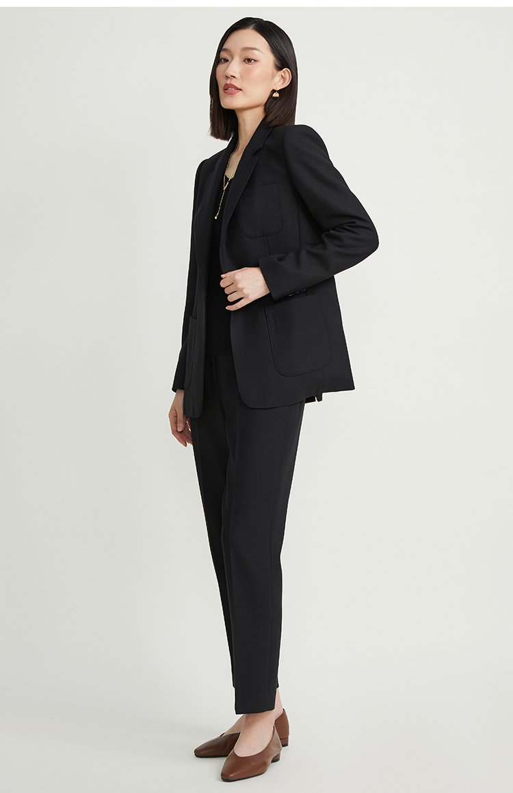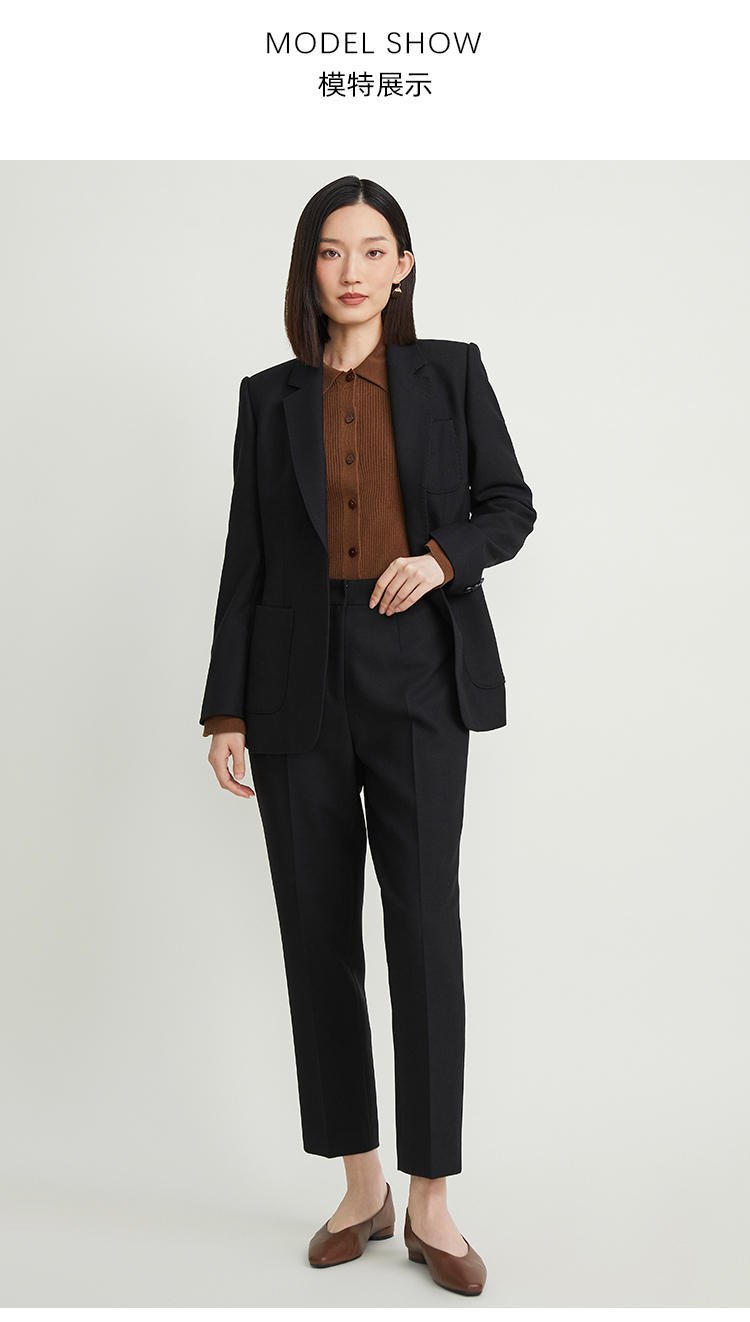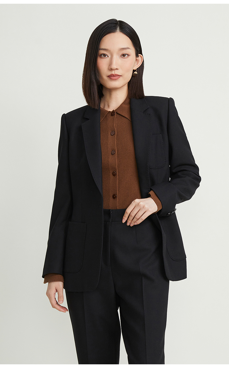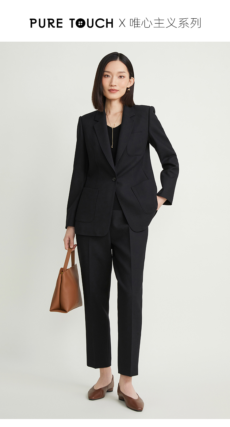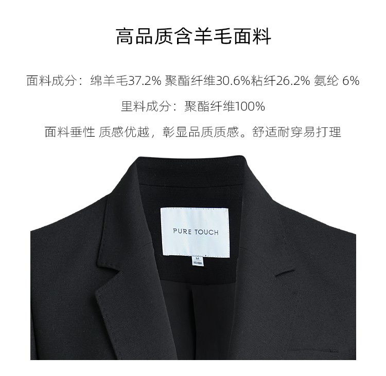 pure touch女士西服羊毛上衣时尚休闲黑色西装通勤百搭外套