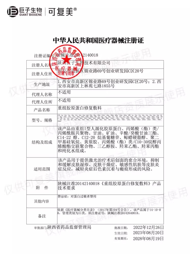可复美重组胶原蛋白肌御赋活修护精粹水120ml/瓶(胶原水)