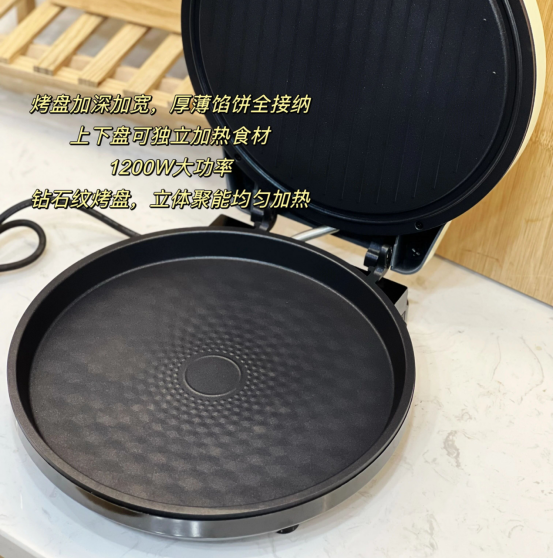 1200W大功率,火力足,快速入味,双面同时加热,烙饼🫓无需翻面 防烫提手,避免烫伤很贴心,手感舒适,拿放方便,新手很好操作♨️ 利用率很高,用来煎鸡蛋🍳、手抓饼、饺子🥟,还可以烤肉🍖,超实用的❗❗