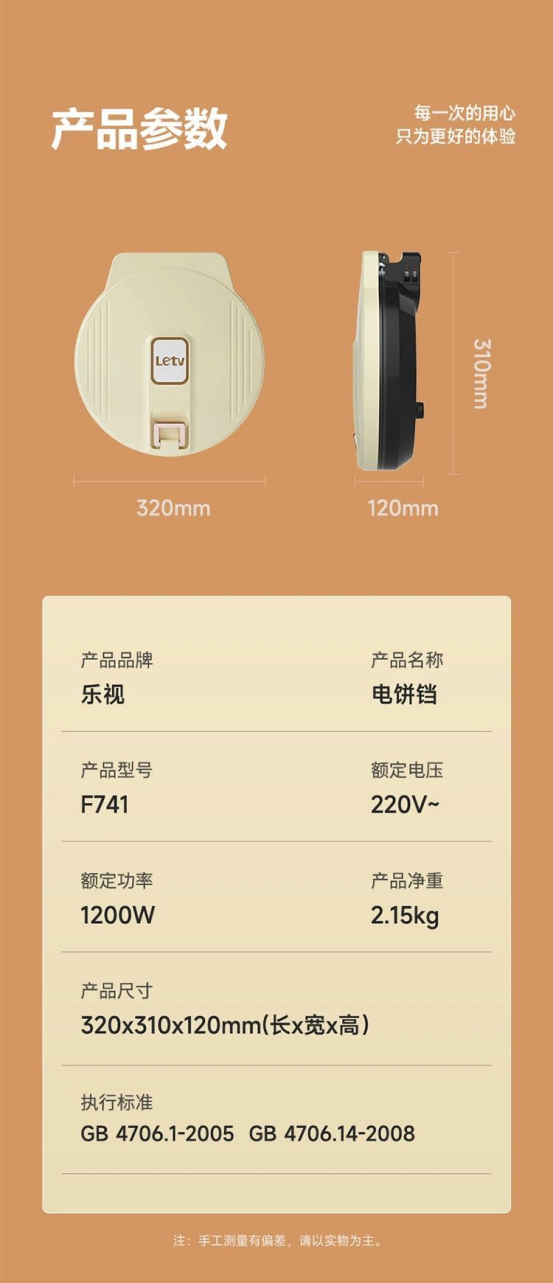 Letv电饼销F741 ❇️烤盘加深加宽,厚薄馅饼🫓全接纳 ❇️上下盘🍽️可独立加热食材,烙烤自由又省电 ❇️1200W大功率 ❇️钻石💎纹烤盘,立体聚能均匀加热♨️