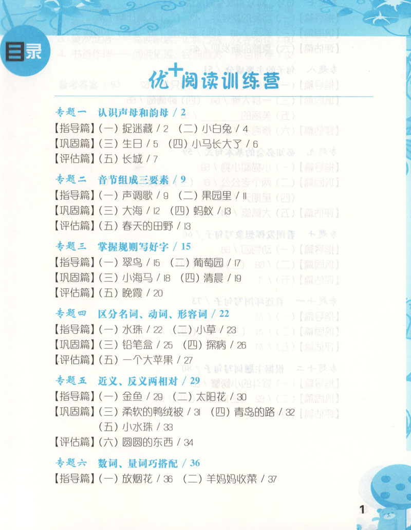 语文优+阅读 1年级 一年级 一本有“指导与解析”的阅读理解书 小学生语文阅读理解强化训练 华东师范大学出版社