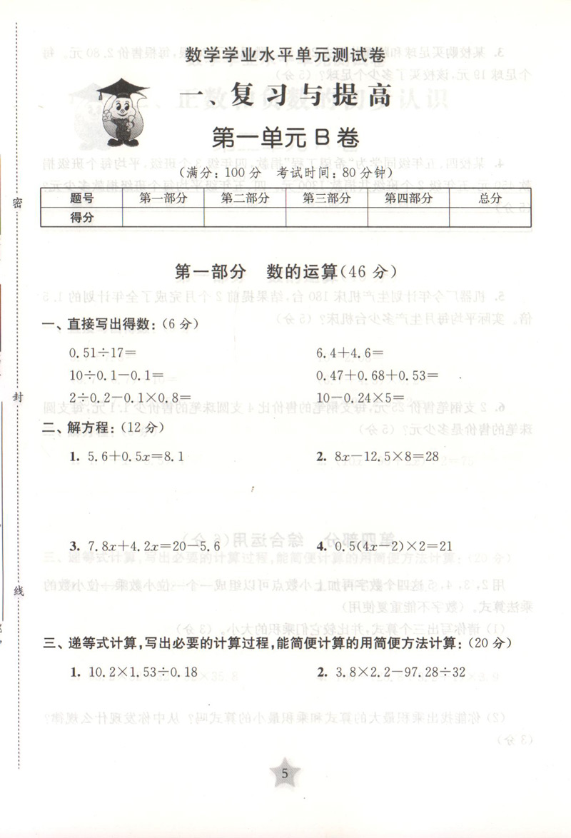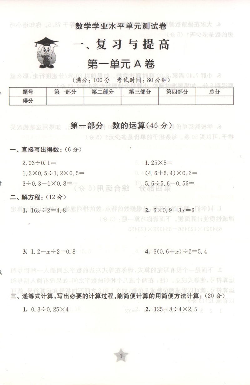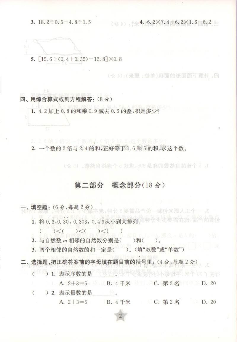 交交大之星 学业水平单元测试卷数学 修订版 5年级下/5年级(下册)第二学期 与上海市二期课改教材配套