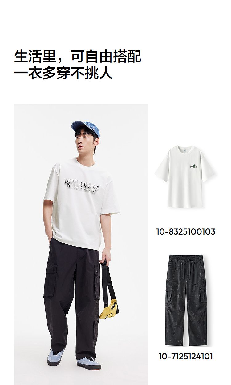 [商场同款]森马短袖T恤男字母印花上衣半袖中长款夏装2025新款潮