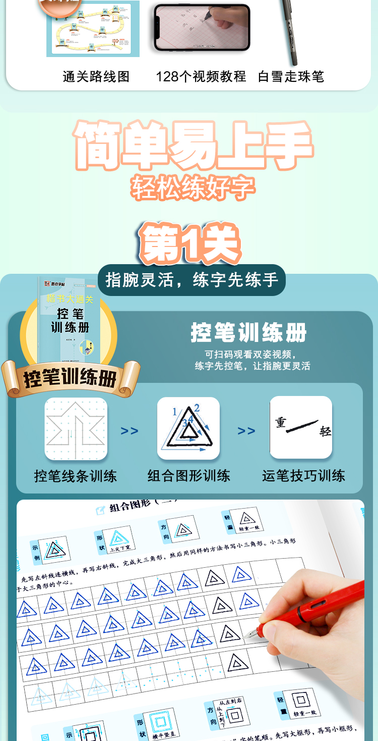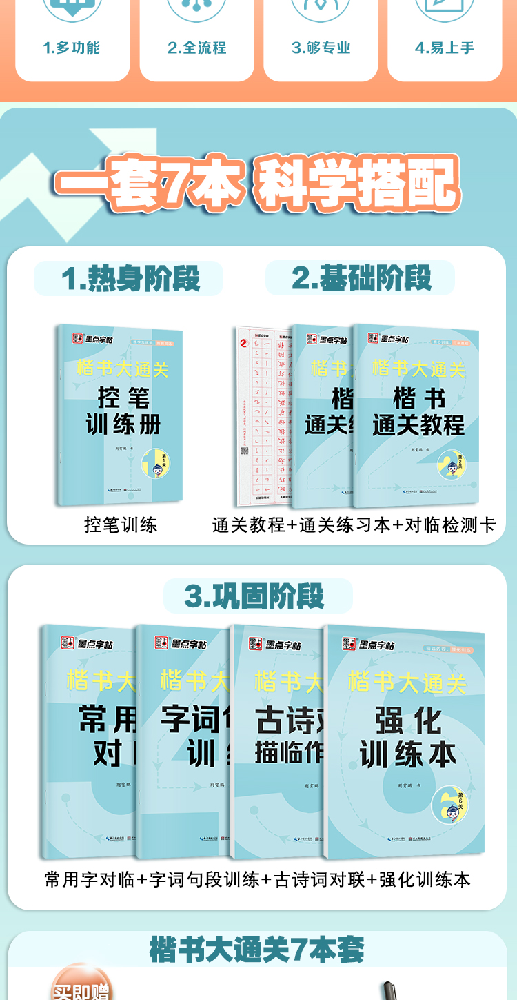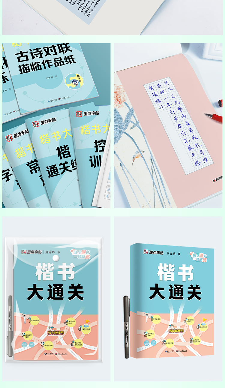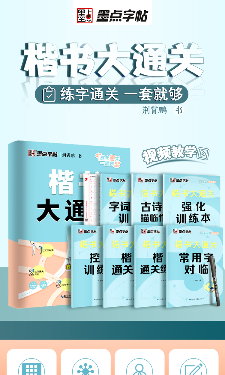 墨点字帖 楷书大通关 荆霄鹏升级新版楷书入门控笔训练字帖钢笔硬笔书法速成练字本初学者成人大学生字帖