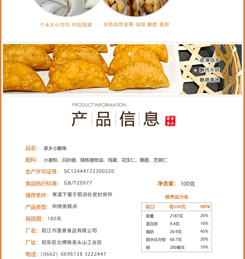 莲香 瑞莲·小酥角·花生芝麻馅 酥香脆口【阳江】