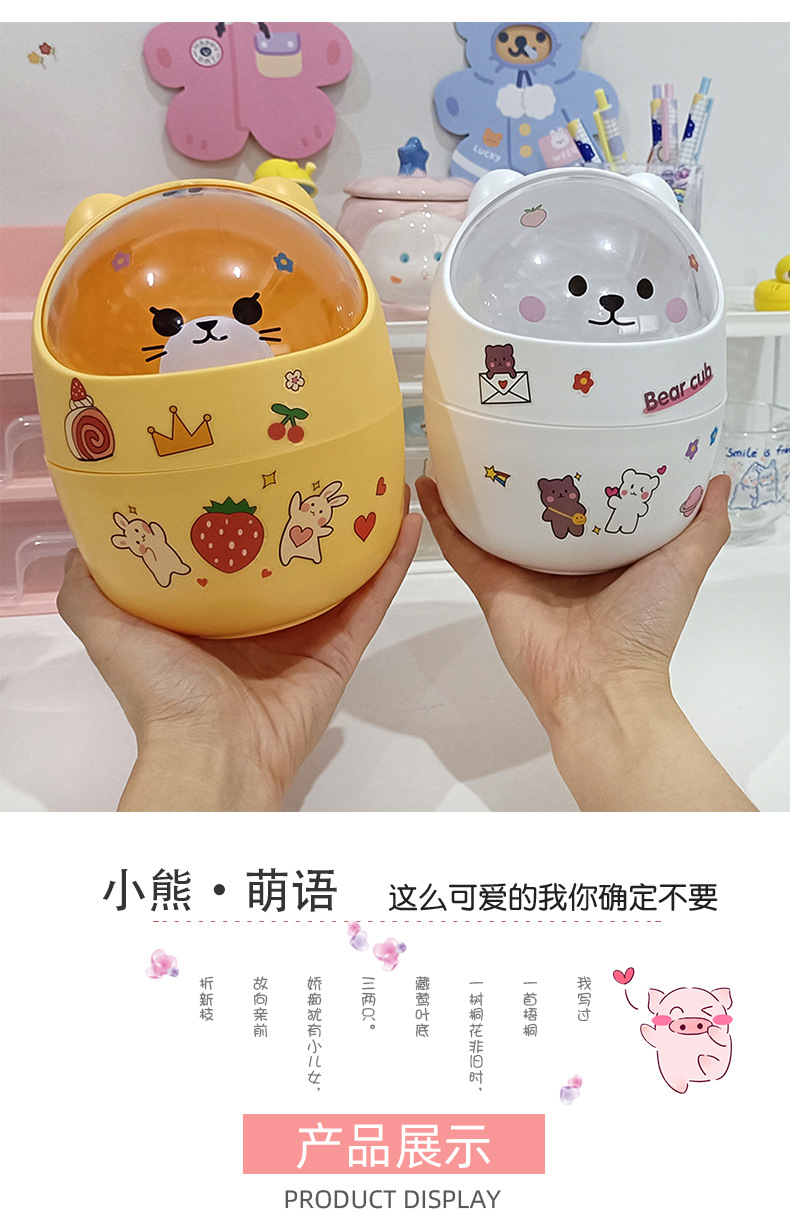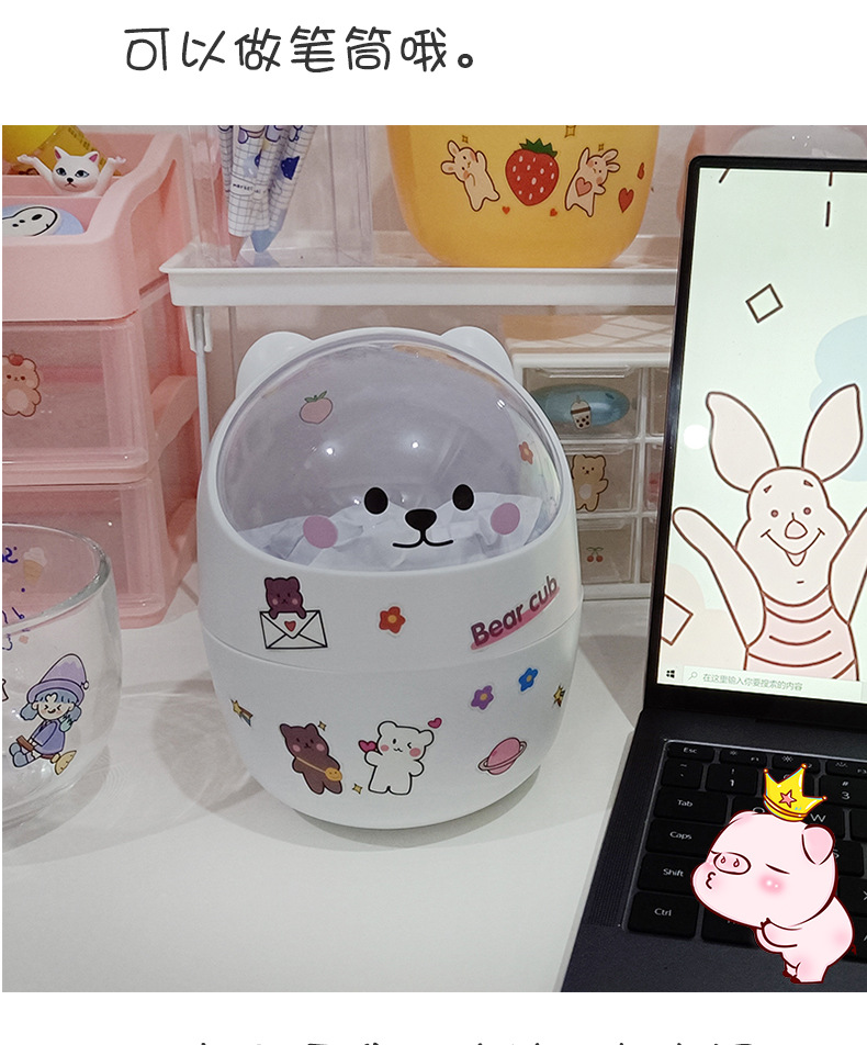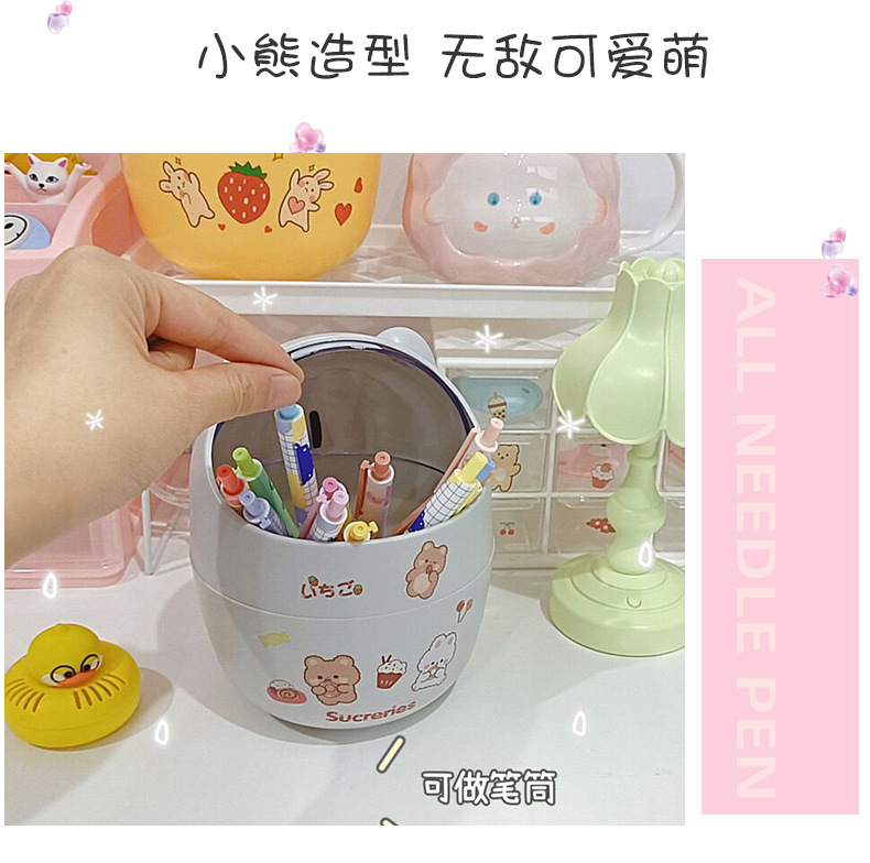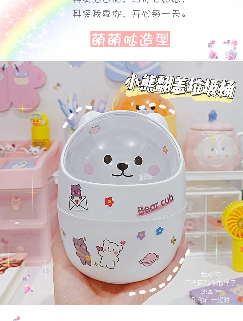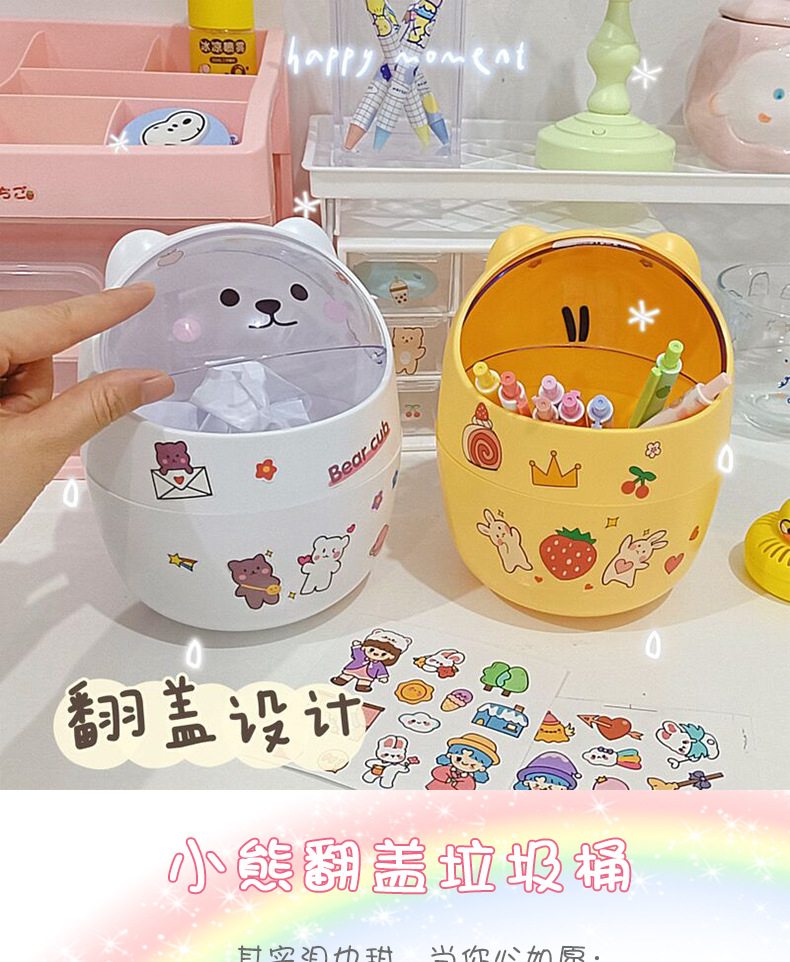 【桌面垃圾桶笔筒】ins简约桌面带盖子翻盖垃圾桶学生宿舍小型可爱小熊收纳盒少女心笔筒