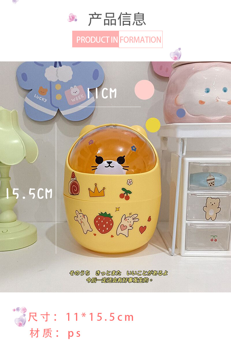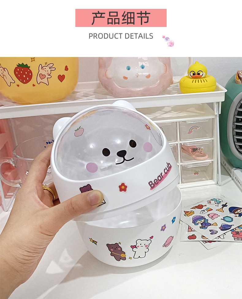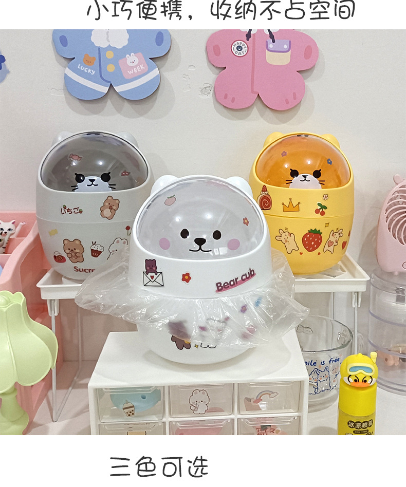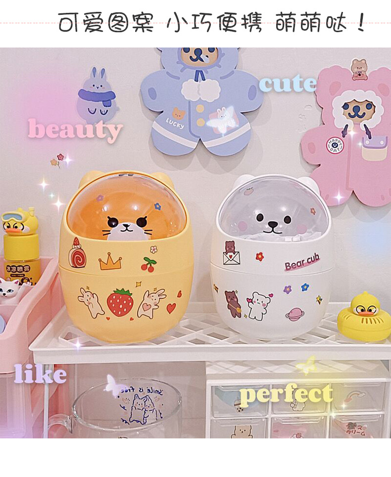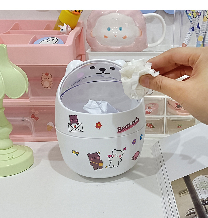 【桌面垃圾桶笔筒】ins简约桌面带盖子翻盖垃圾桶学生宿舍小型可爱小熊收纳盒少女心笔筒