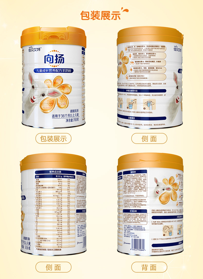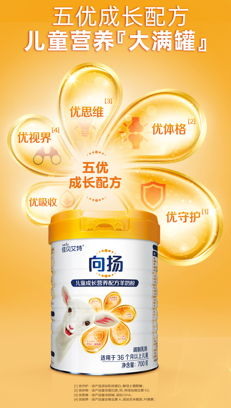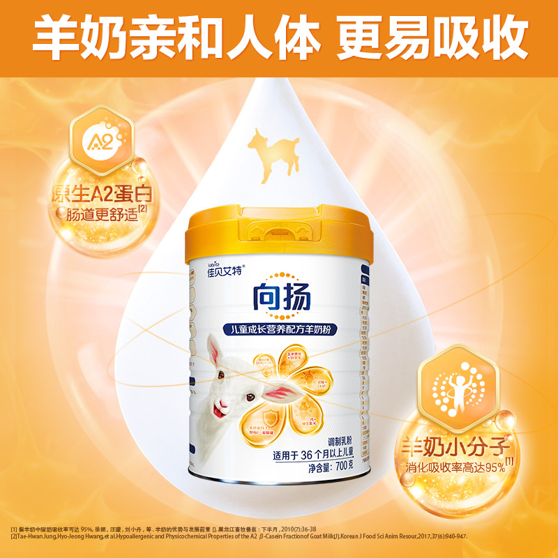 佳贝艾特向扬儿童学生成长配方羊奶粉3-12岁700g 全面营养