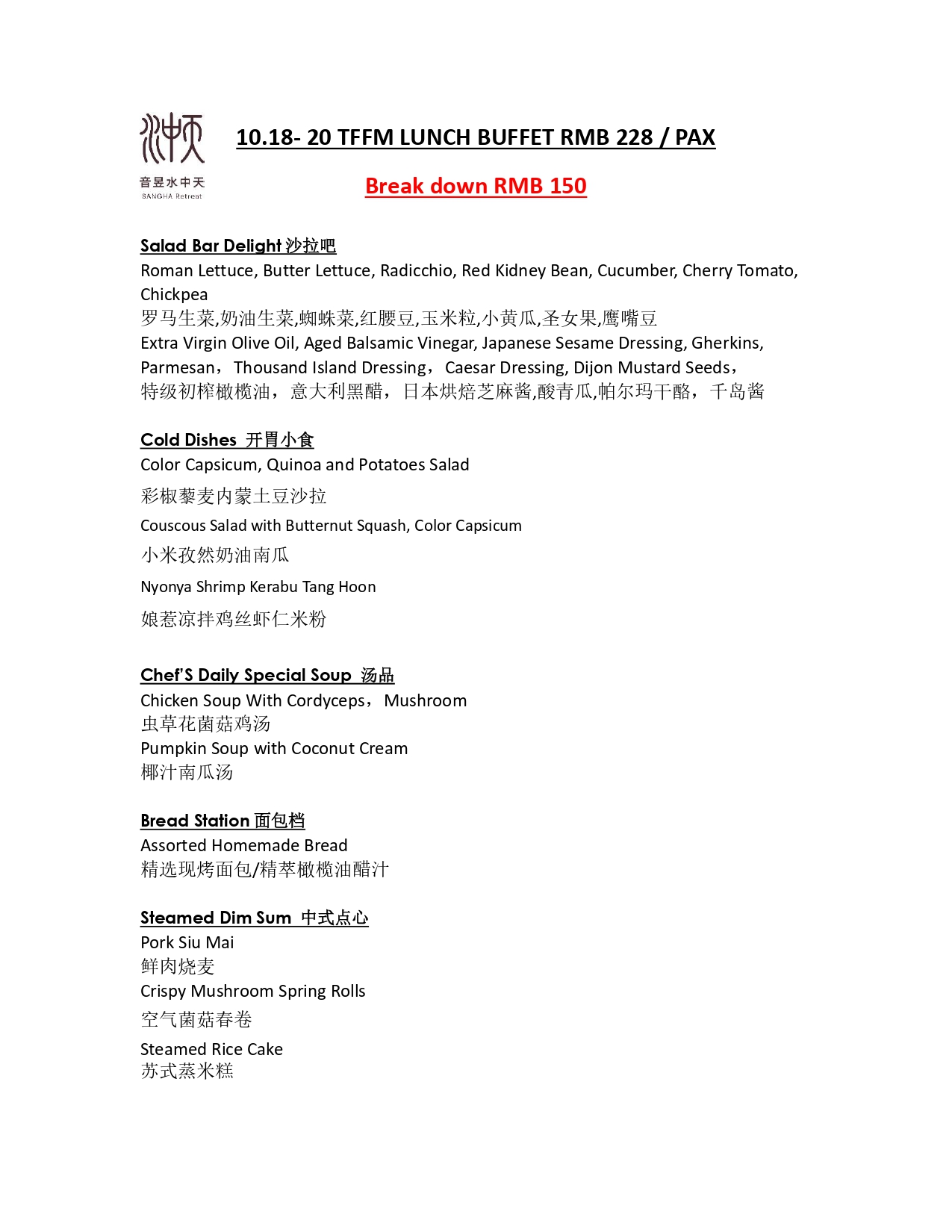疗愈艺术节限定低碳自助餐价值228元(适用时间10/18-20 12:00-14:00)