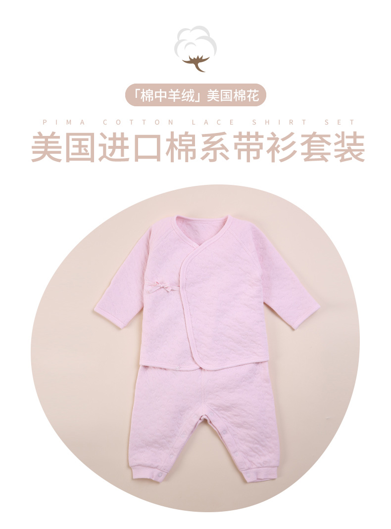 i-baby素色提花美国棉花空气层婴儿套装宝宝内衣套装幼儿家居服