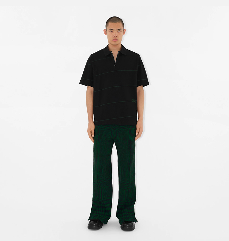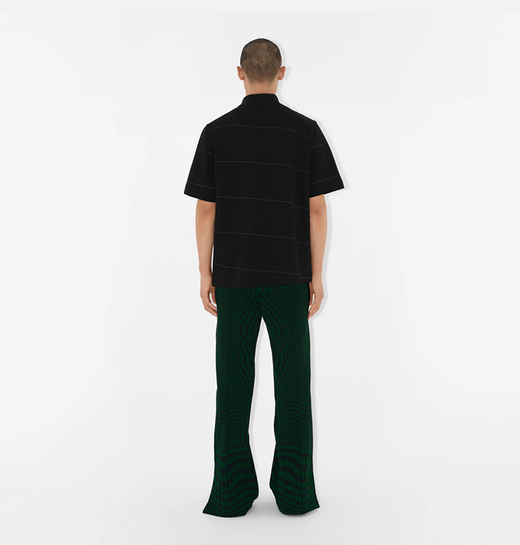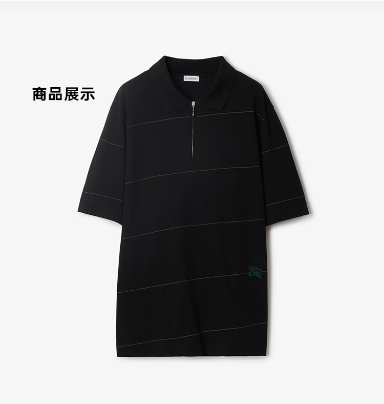 BURBERRY 巴宝莉 男士马术骑士徽标刺绣条纹棉质短袖 Polo 衫 黑色 8083718 A1189