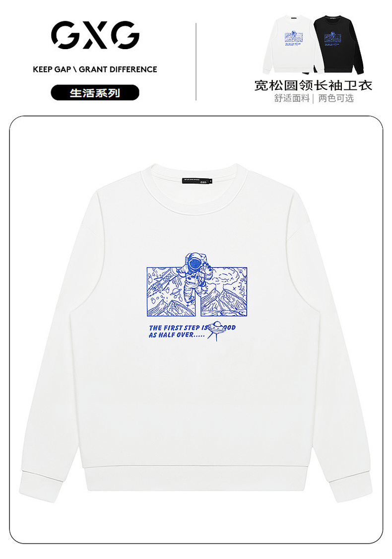 GXG男装【蓝色宇航员】春季潮流字母印花男士圆领长袖卫衣K&C