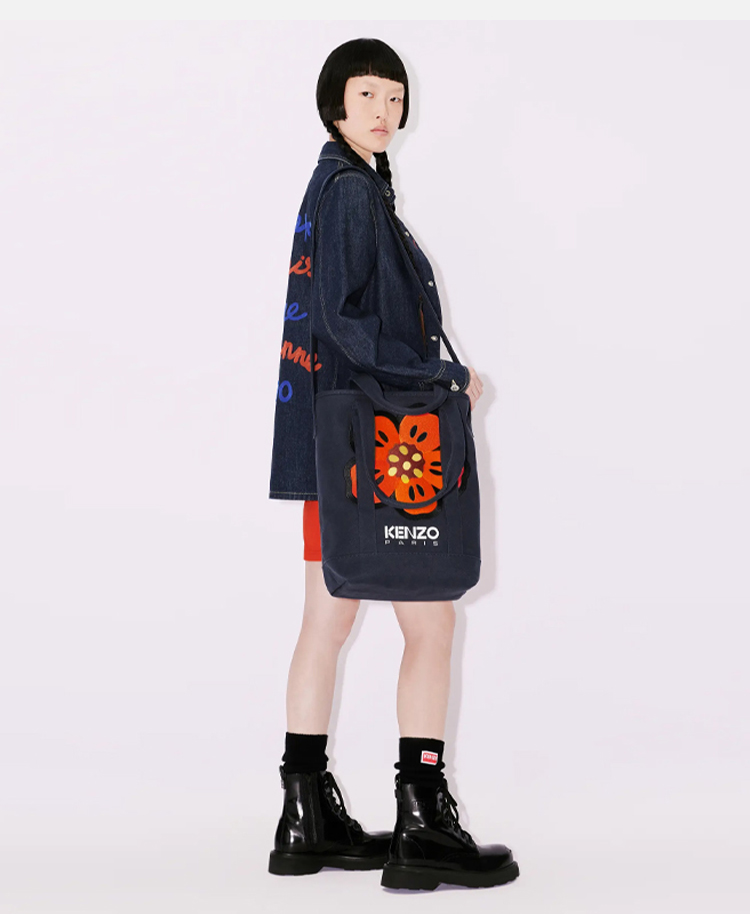 KENZO 高田贤三 女士“BOKE FLOWER”徽章印花棉质提挎包 蓝色 FD65 SA901 F34 76