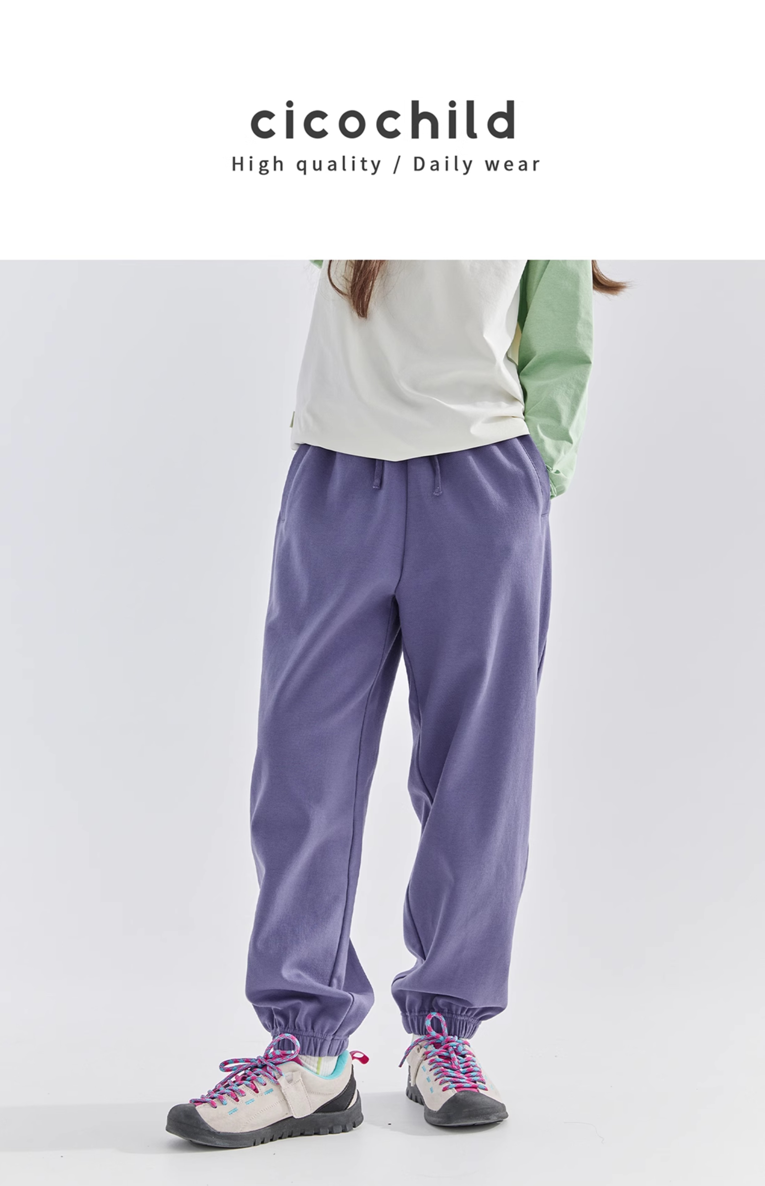 cicochild 2025年春款新品儿童双面针织运动裤子女童休闲束脚裤