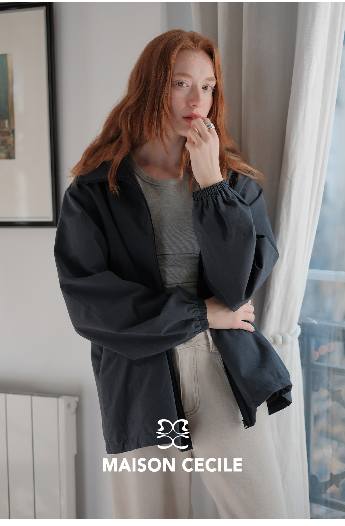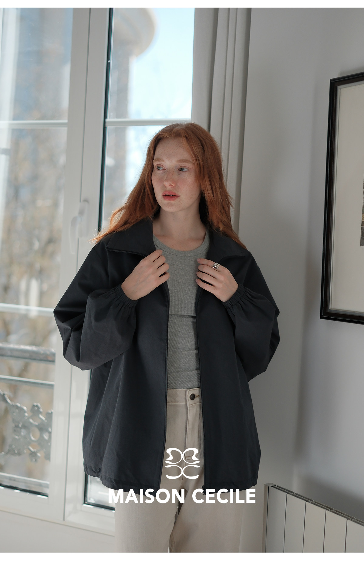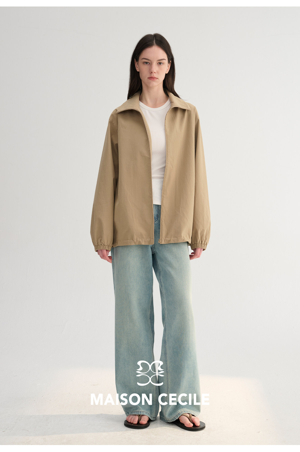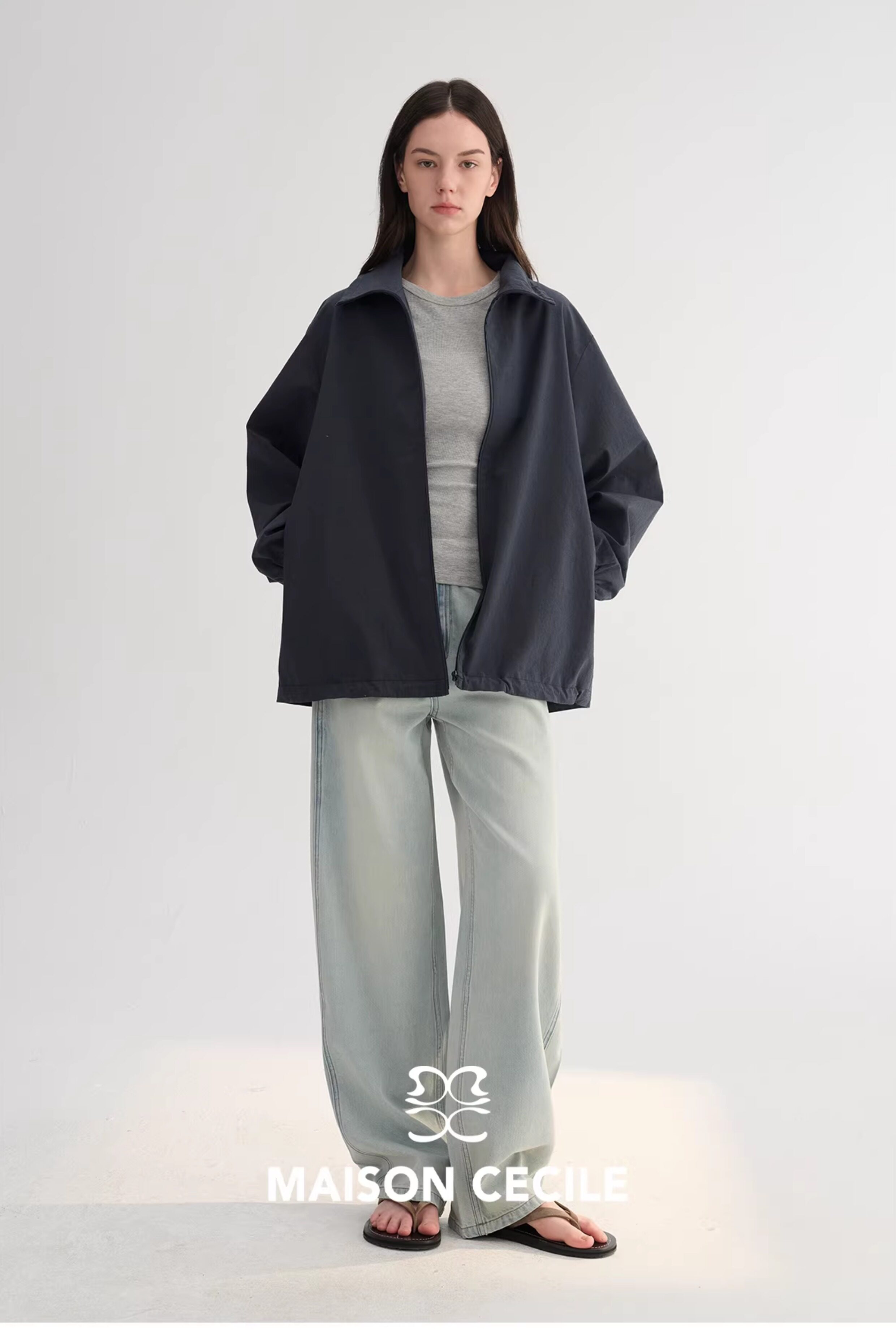 MC两色|山羊绒棉松弛感内里同色廓形翻领夹克外套MAISON CECILE