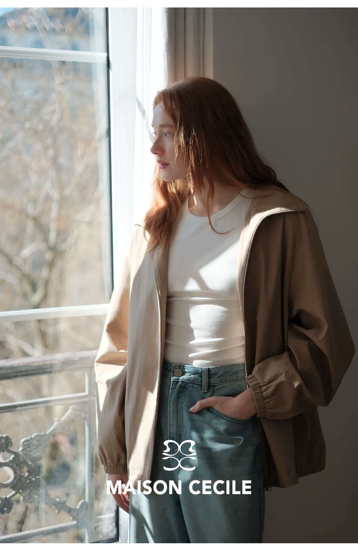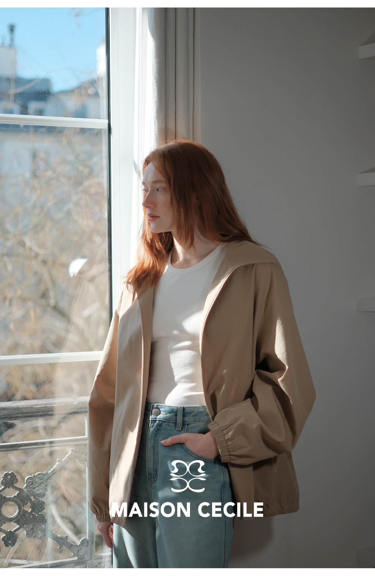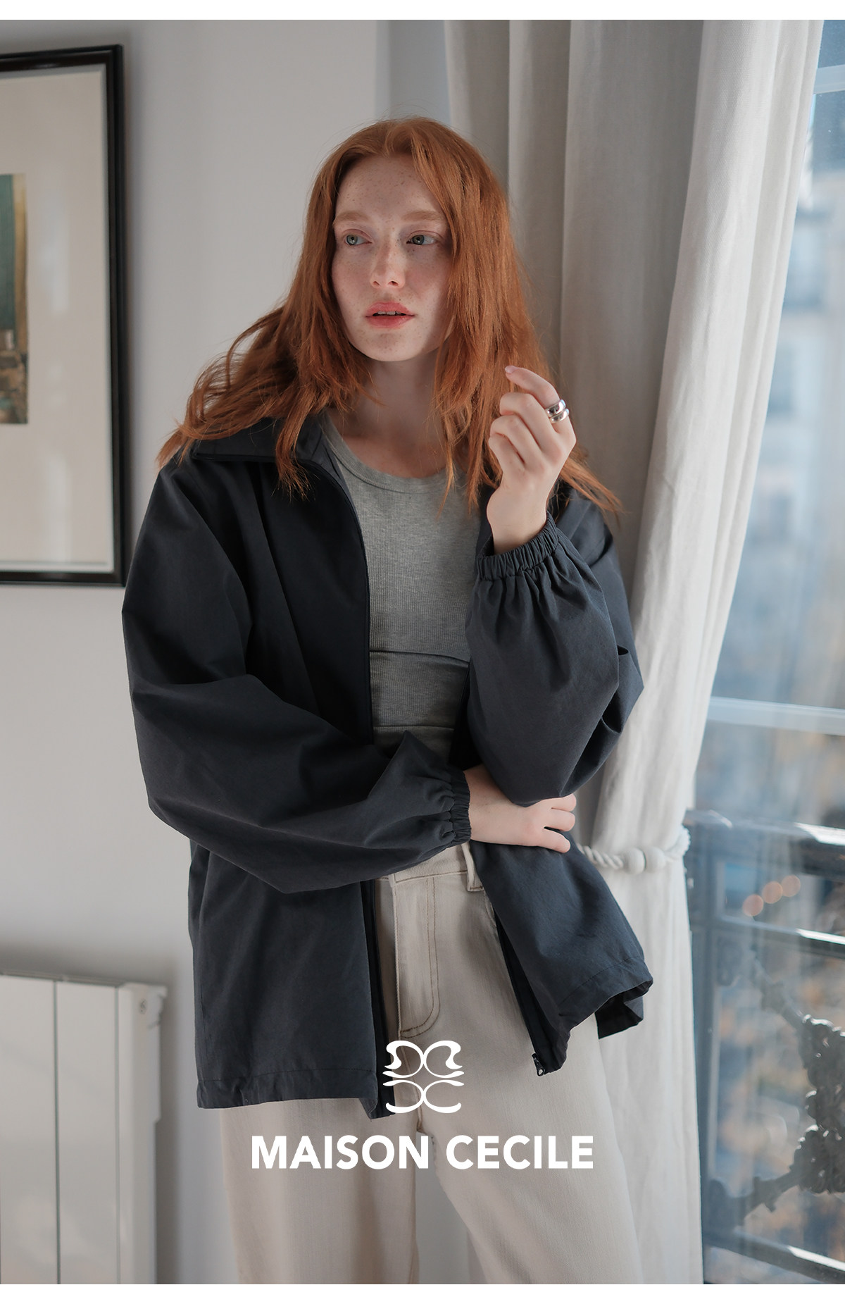 MC两色|山羊绒棉松弛感内里同色廓形翻领夹克外套MAISON CECILE