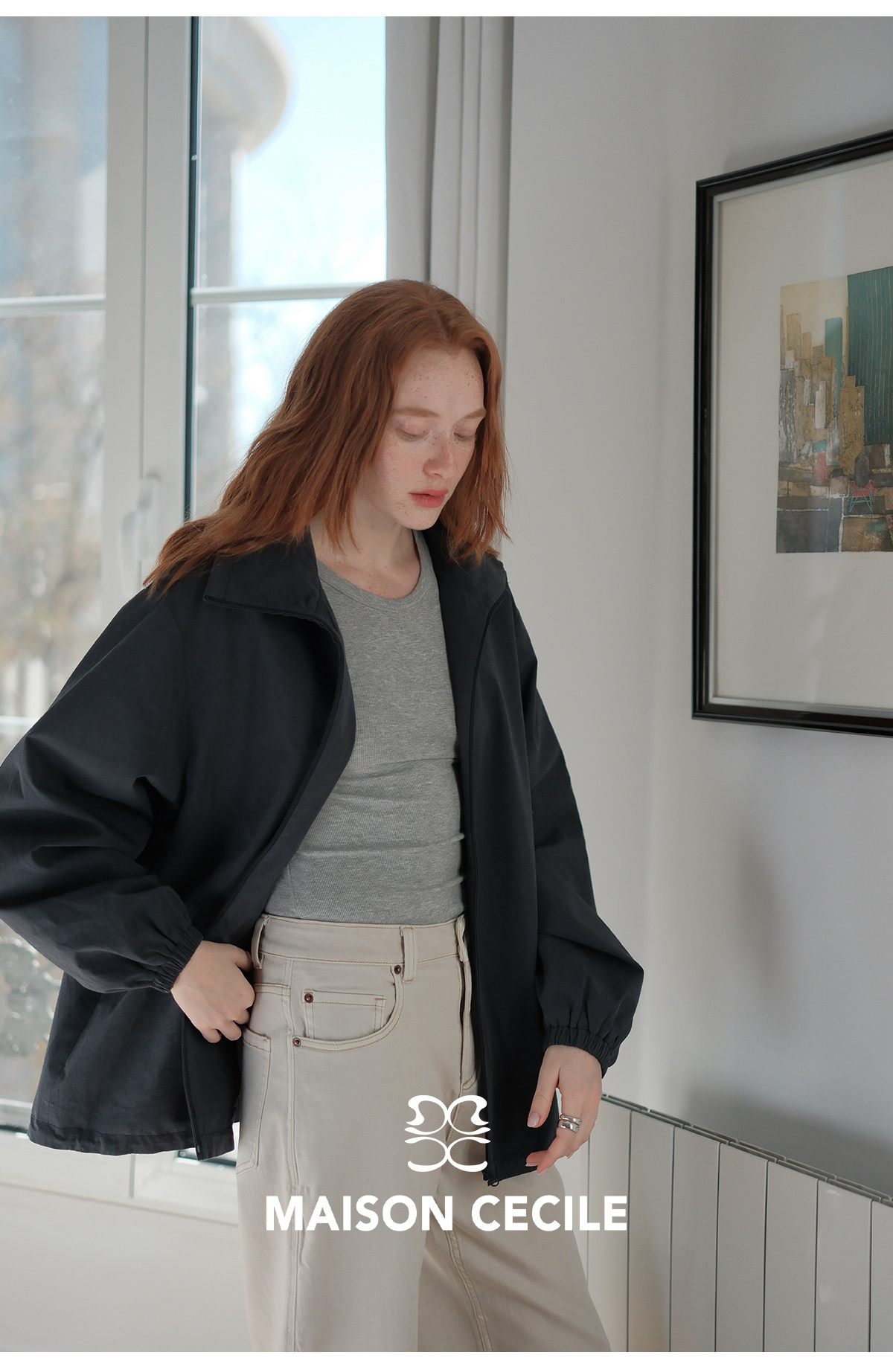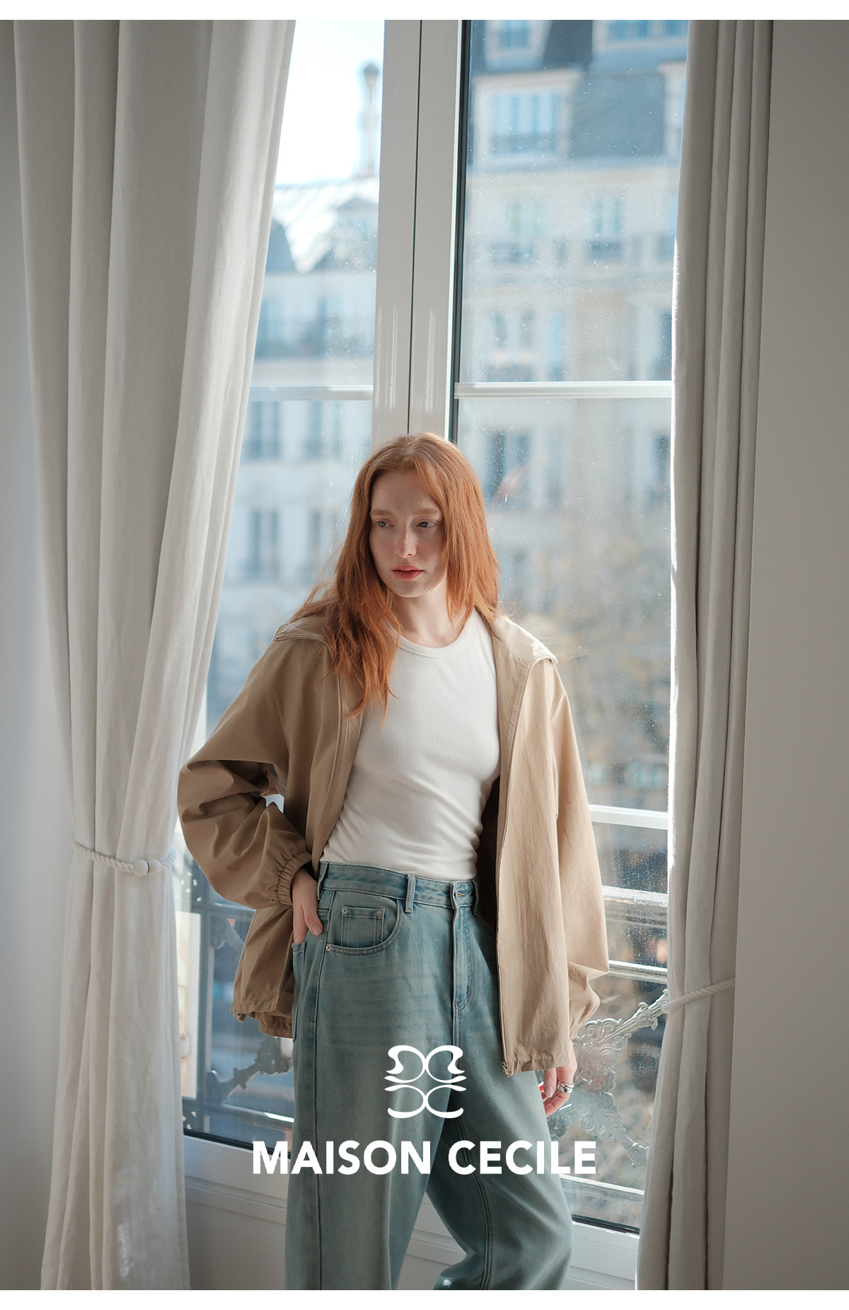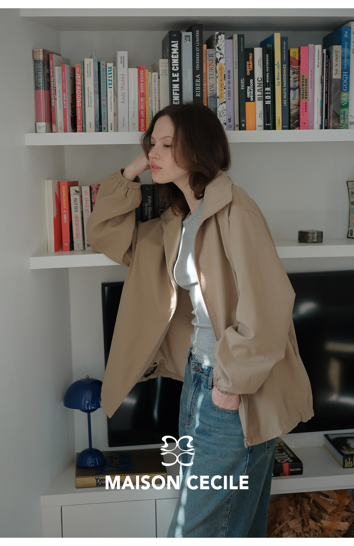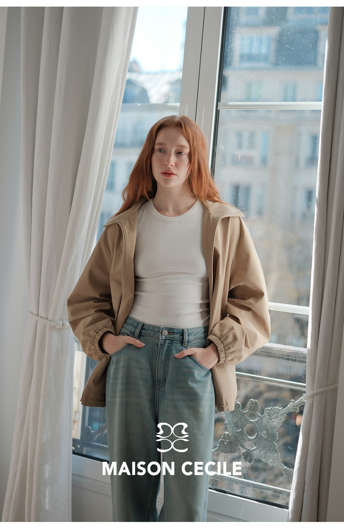MC两色|山羊绒棉松弛感内里同色廓形翻领夹克外套MAISON CECILE