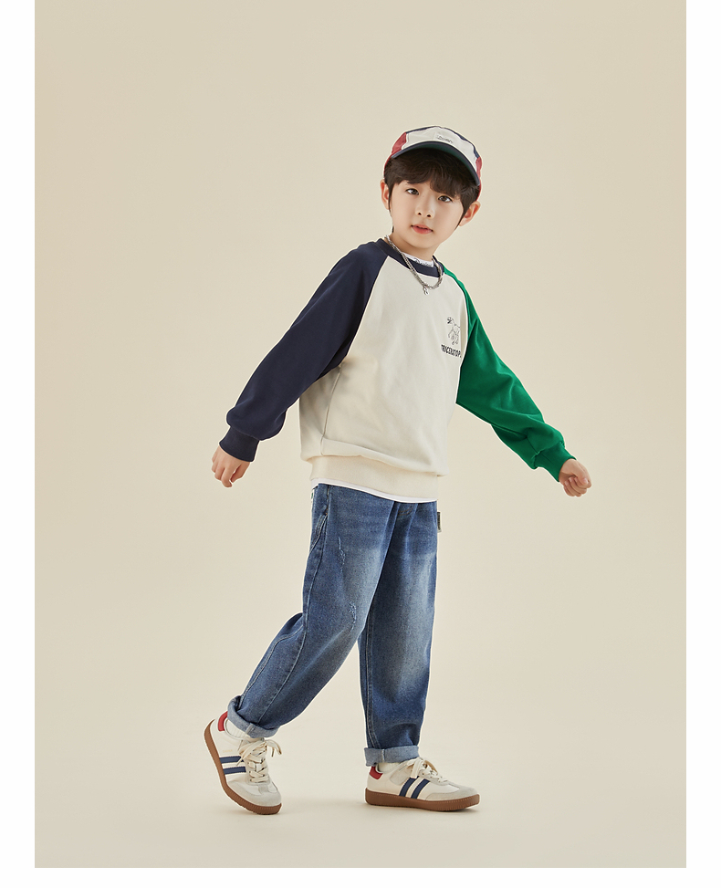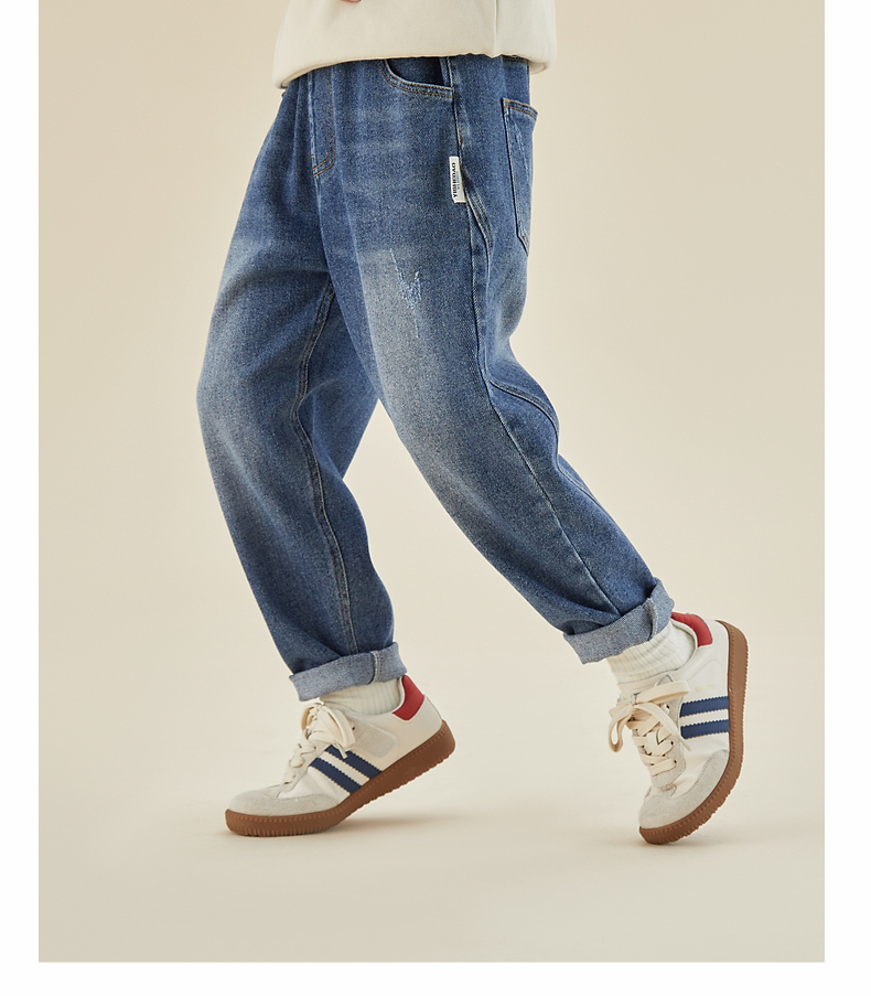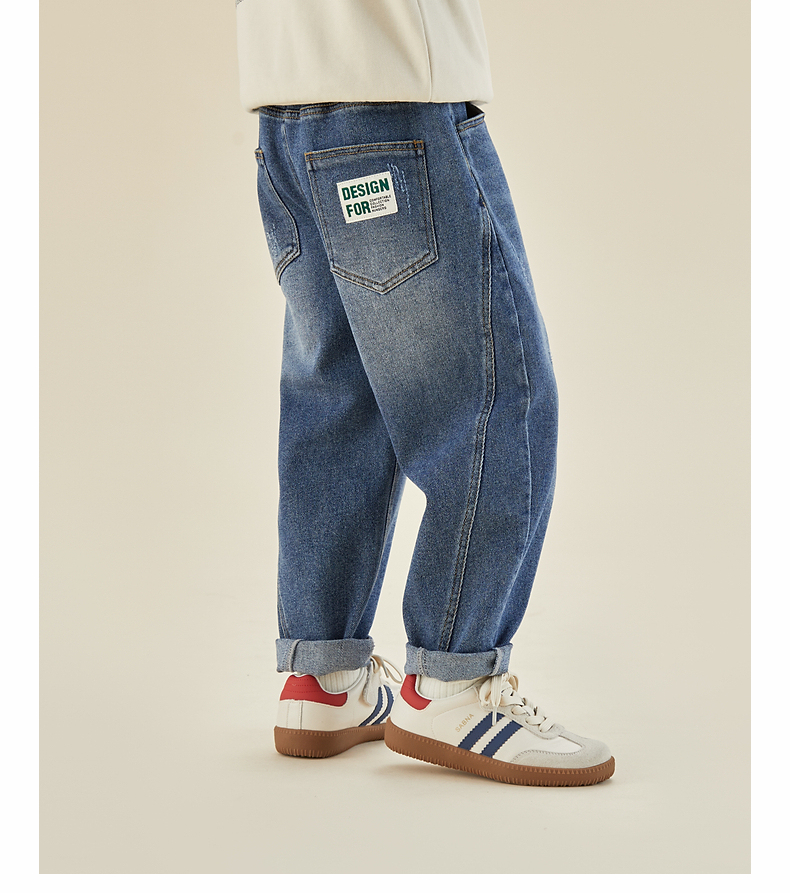 【团购价69.9】多多家男童牛仔裤春秋季2024新款字母贴标儿童裤子中大童长裤春装9203