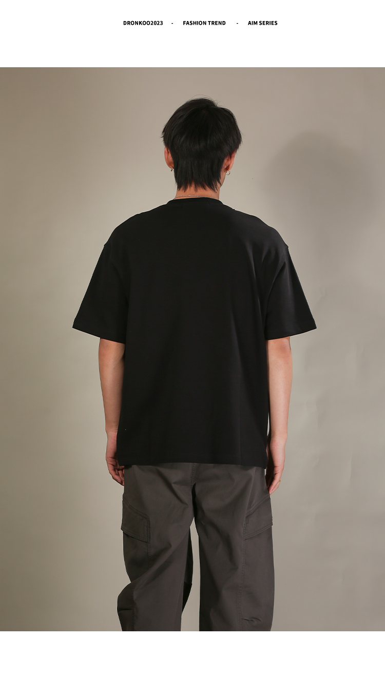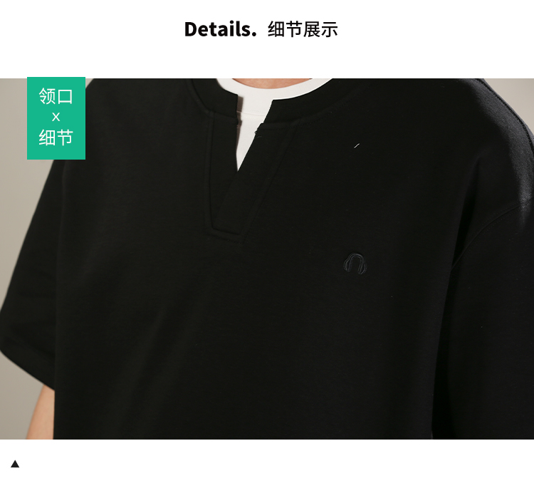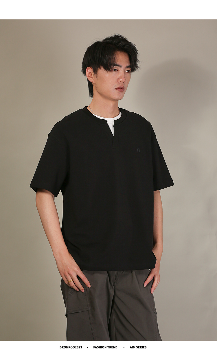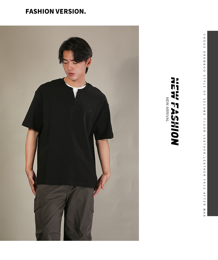 DRONKOO 2026 圆领左胸耳机刺绣小V领拼接假两件短袖T恤