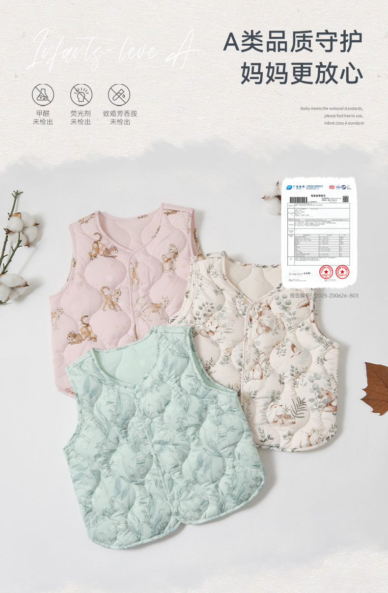 【2025年秋冬新品】i-baby太空气凝胶素色印花V领儿童马甲春季秋冬款