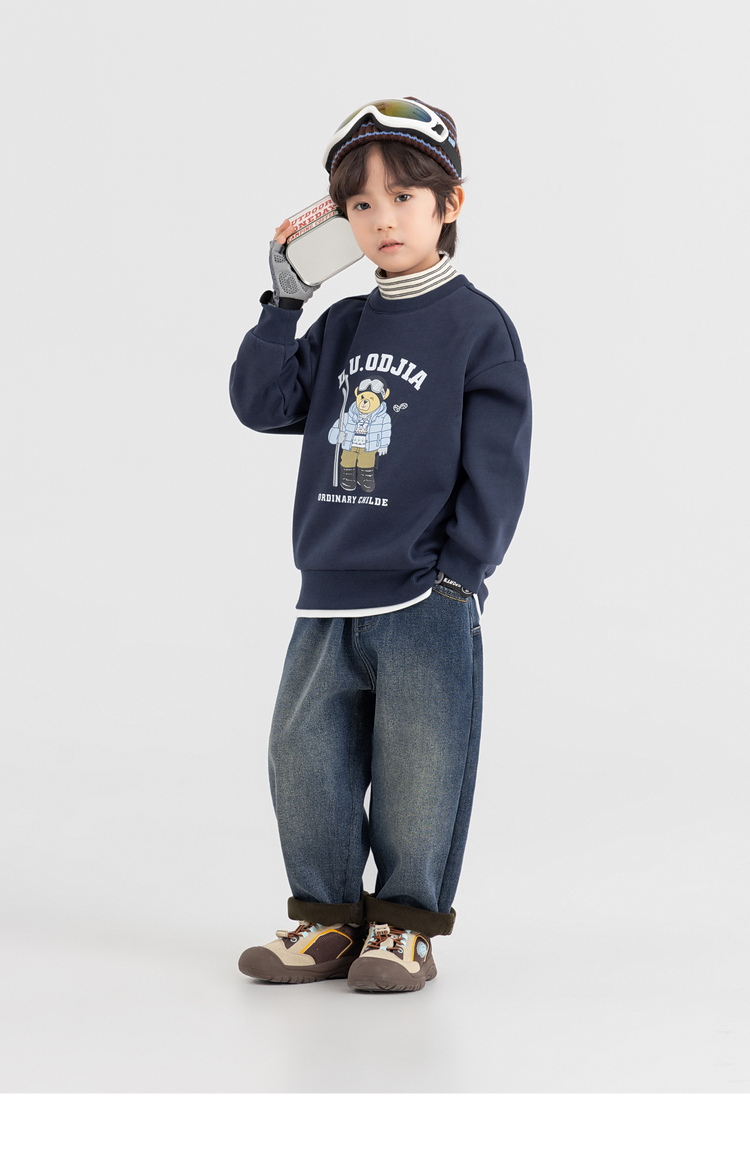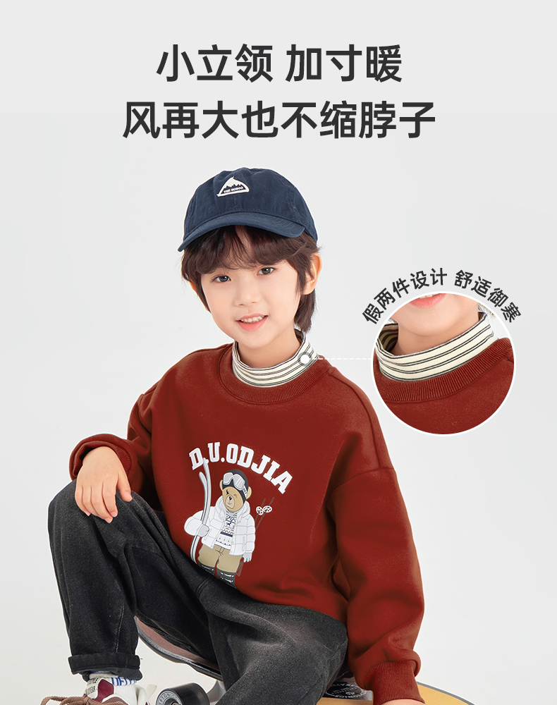 【件件底价,童装双倍积分】多多家男童假两件卫衣加绒2025秋冬新款儿童中大童洋气一体绒冬装11178
