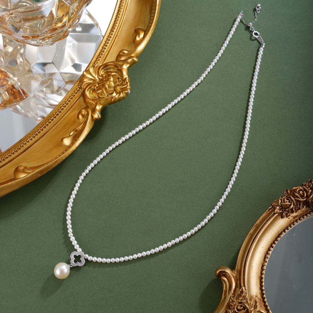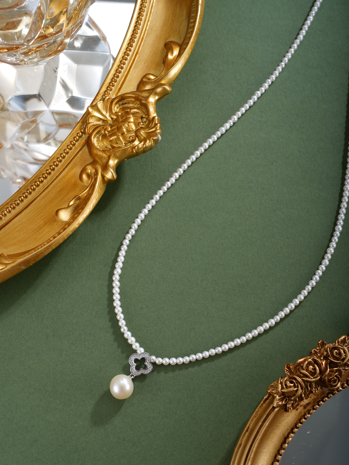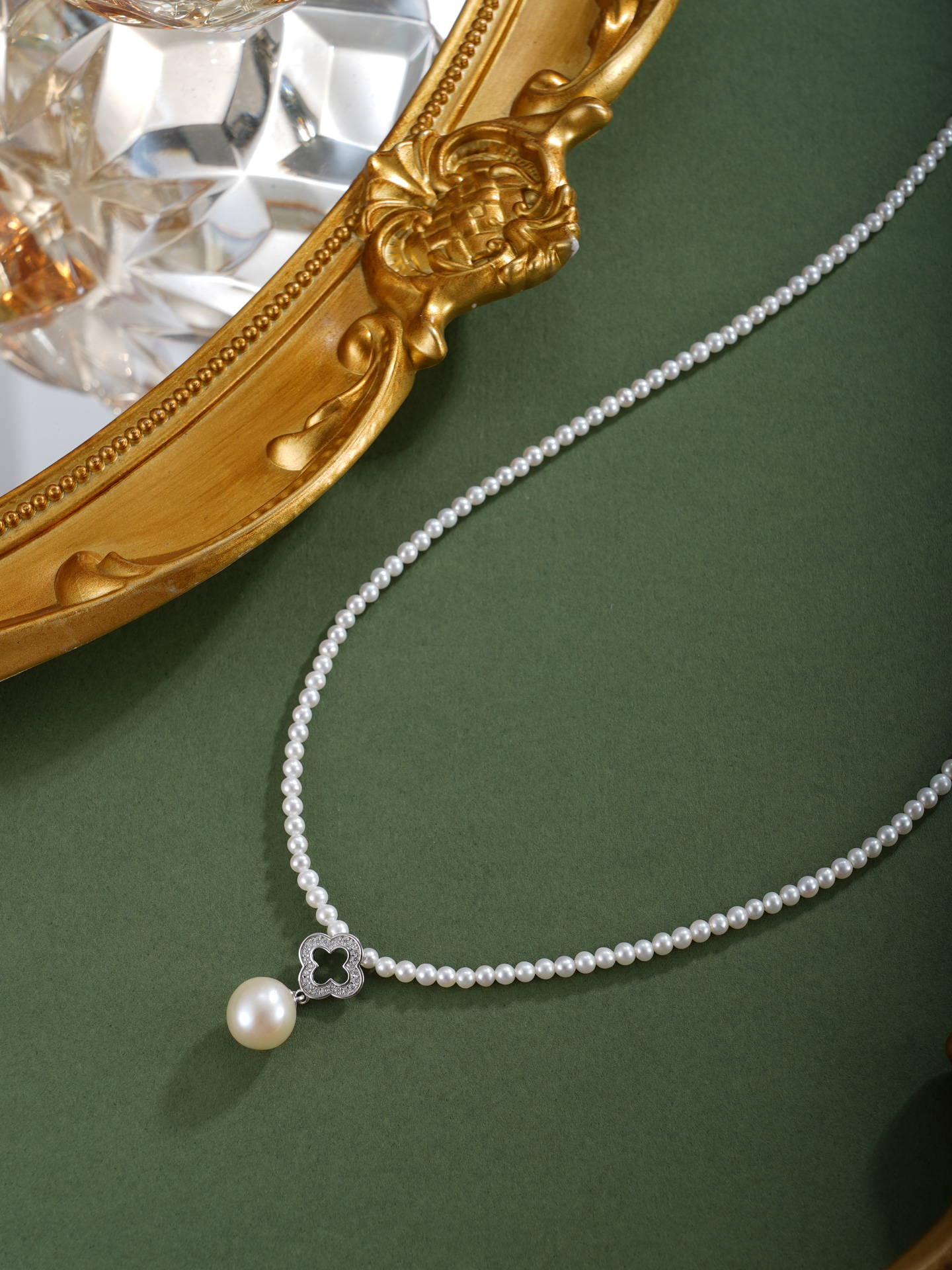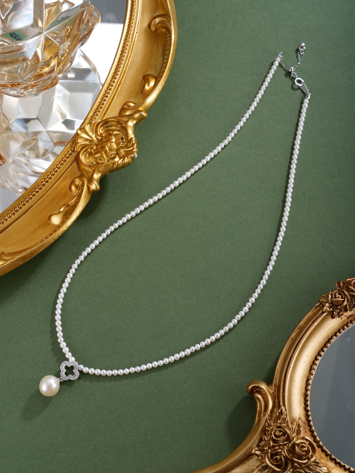 子佩集【幸运之契】银S925珍珠惜王妃项链【ZZXL004】2.8mm小珠9mm大珠四叶草2601