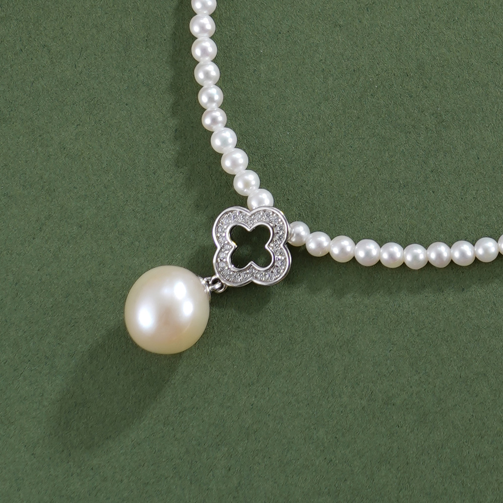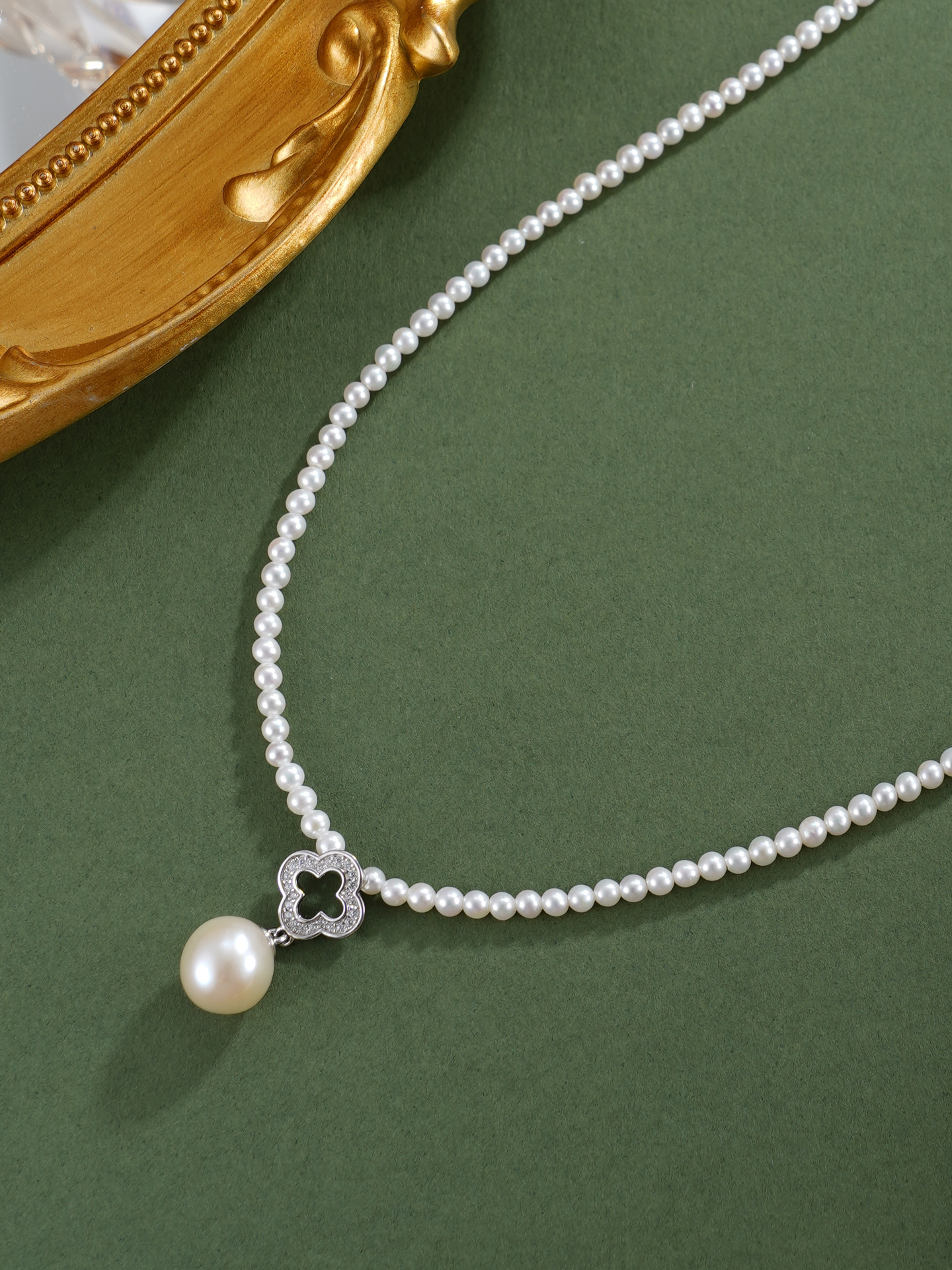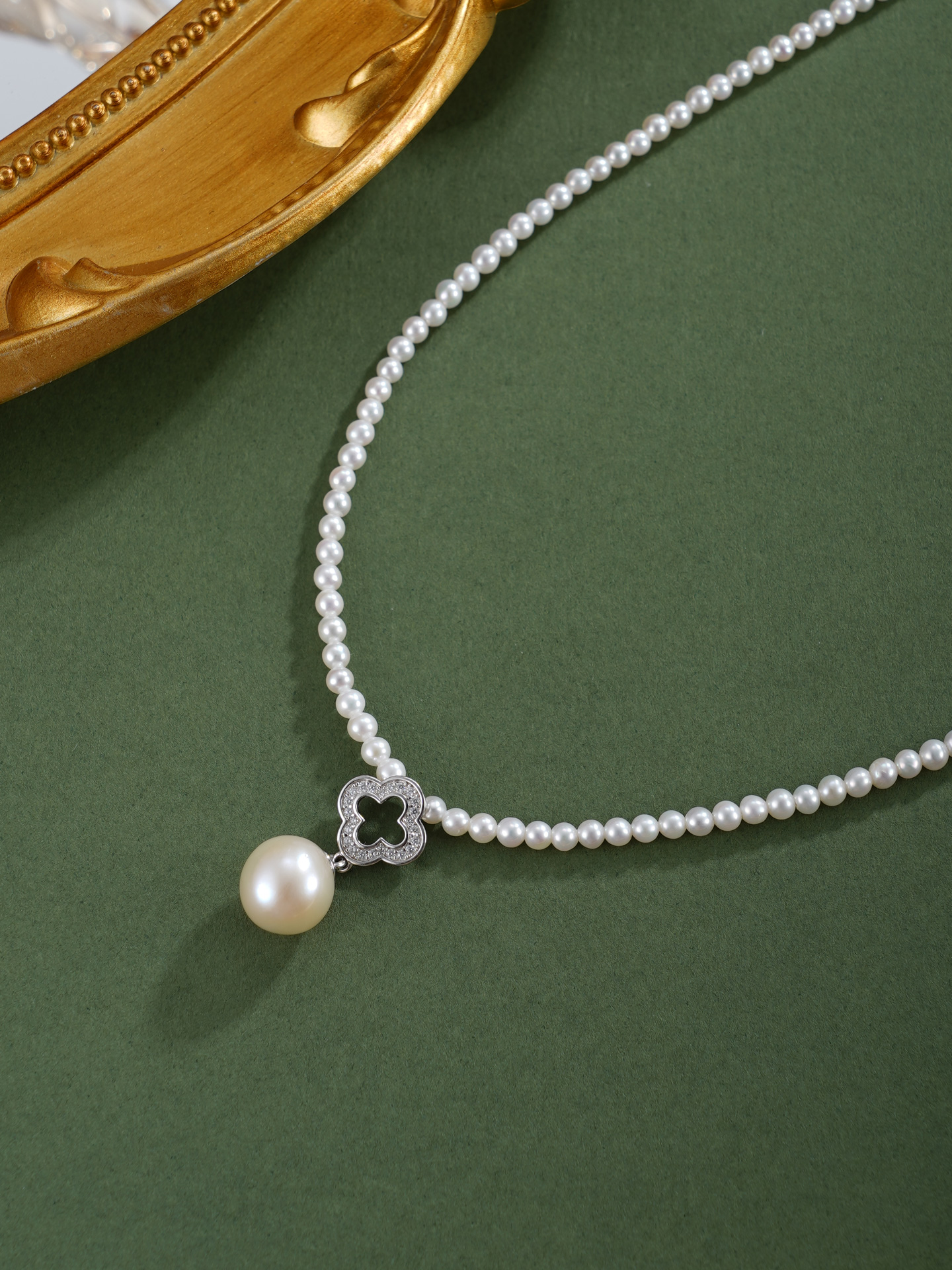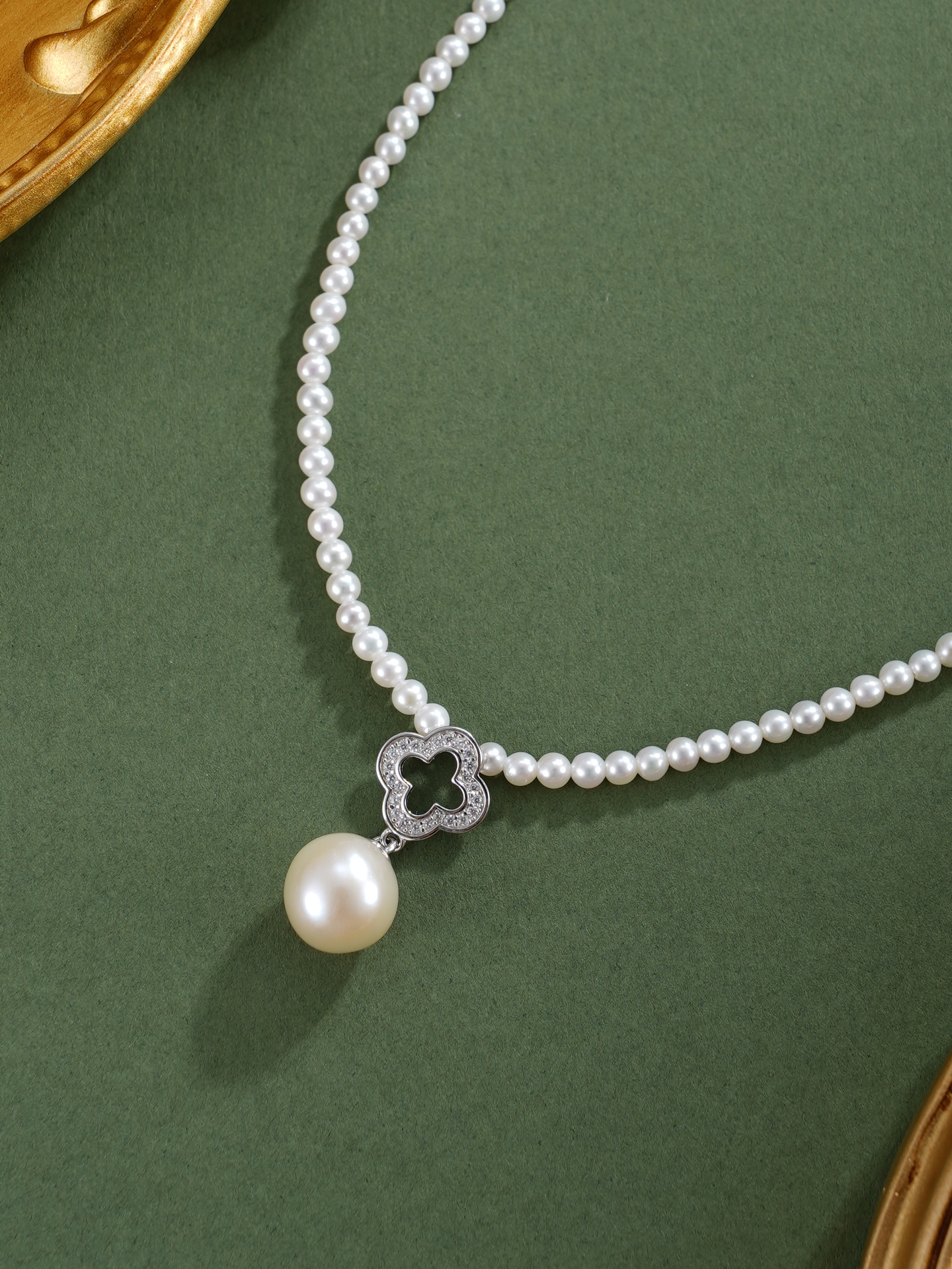 子佩集【幸运之契】银S925珍珠惜王妃项链【ZZXL004】2.8mm小珠9mm大珠四叶草2601