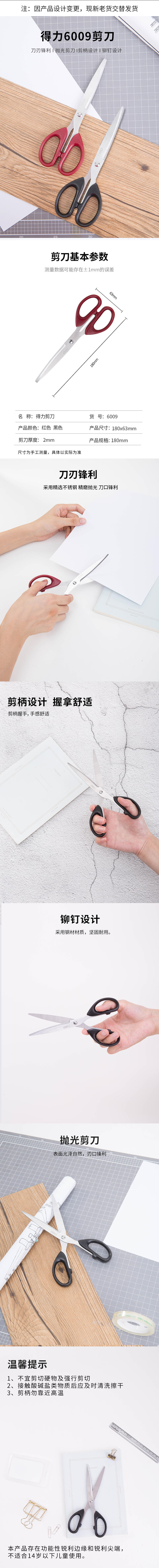 得力6009剪刀(红)