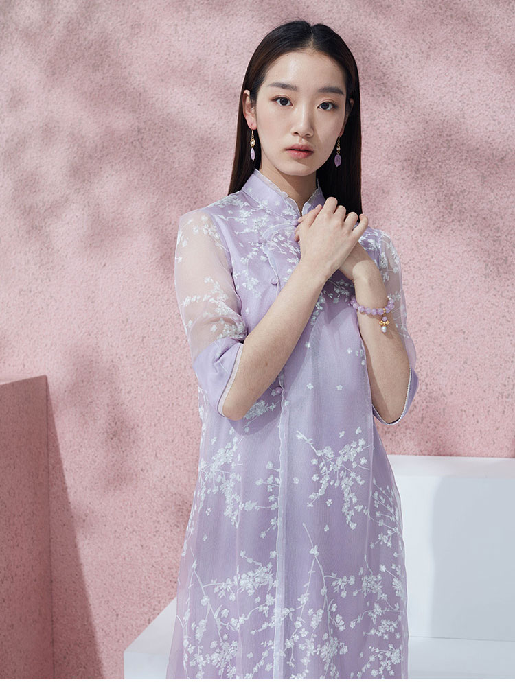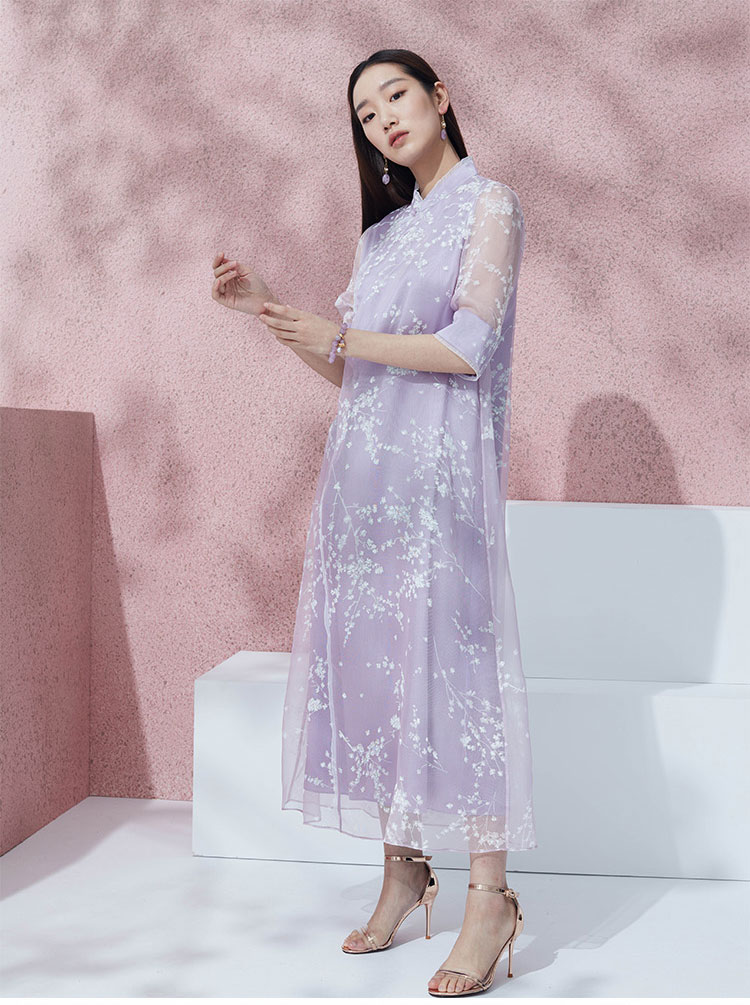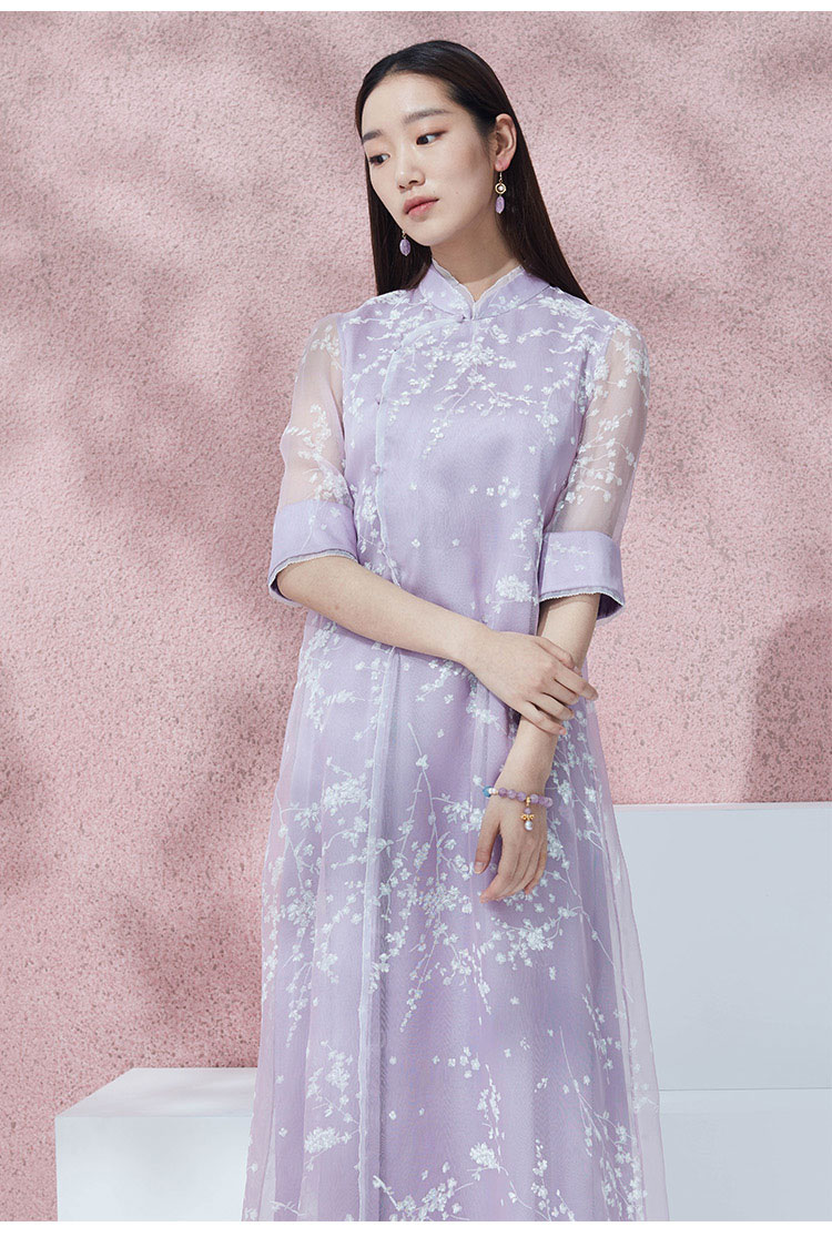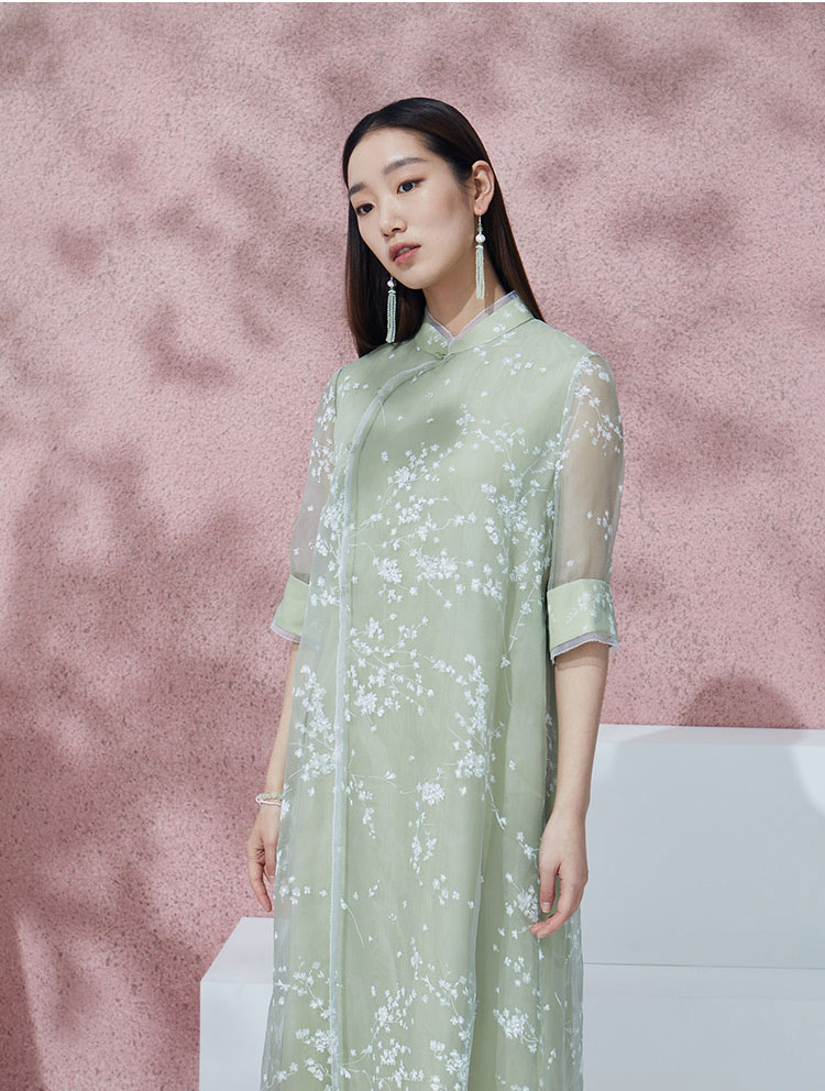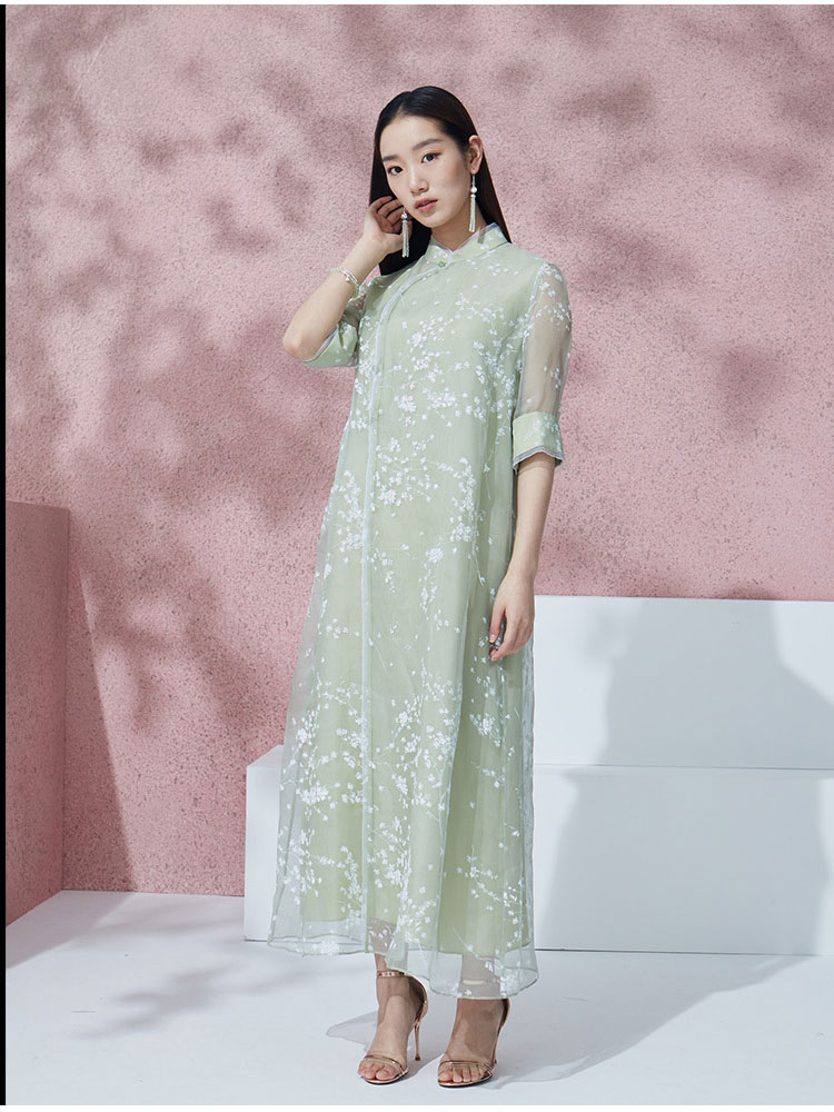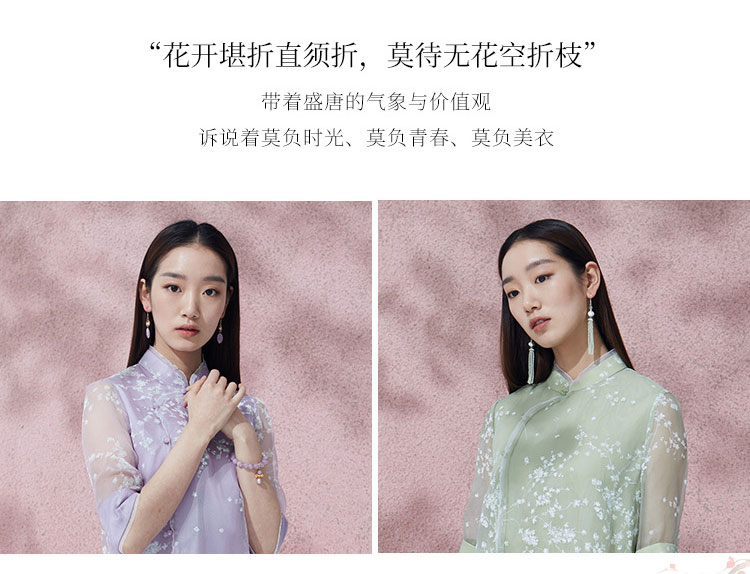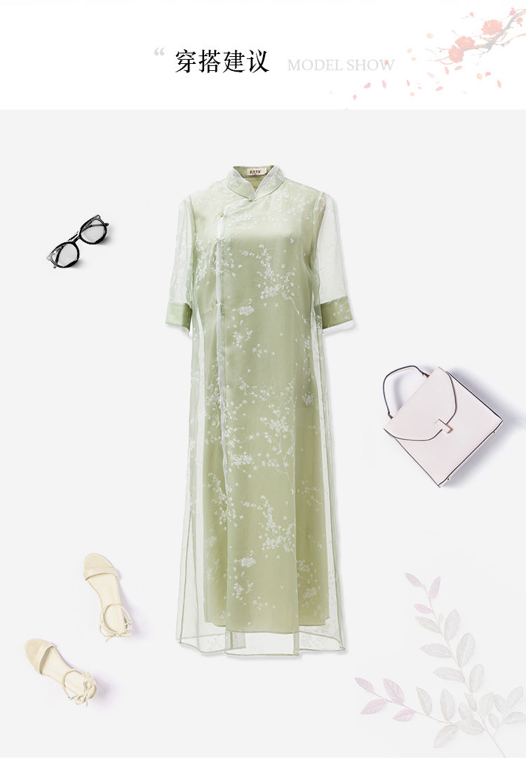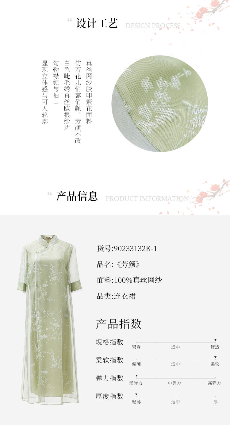 吉祥衣家新中式国风复古春夏新款高端气质显瘦修身女装芳颜连衣裙