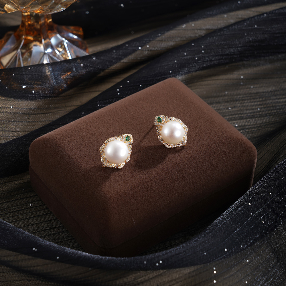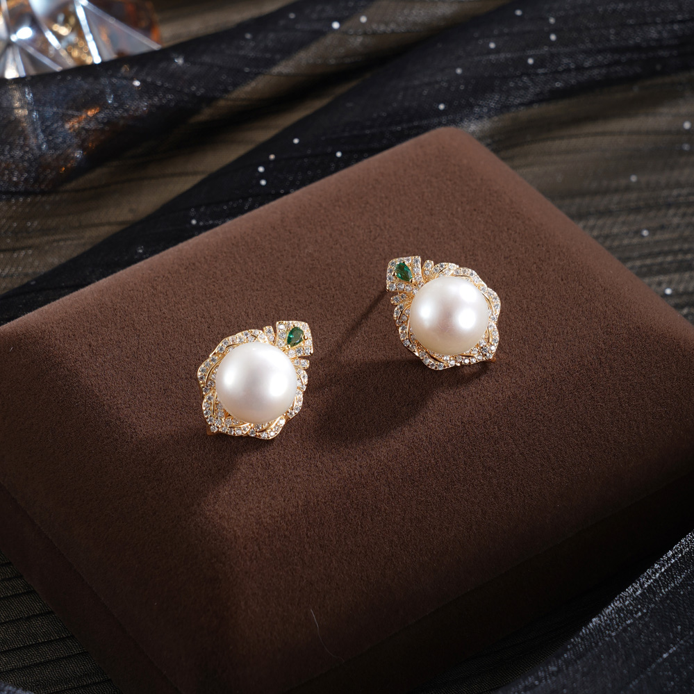 子佩集【仙踪情缘】银S925珍珠惜王妃耳钉【MLEH040】镀金绿桃2602