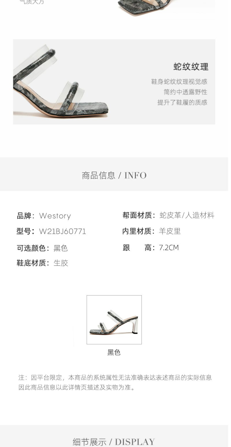 westory女鞋2021夏季新款蛇皮高跟凉鞋公主鞋拖鞋外穿W21BJ60771