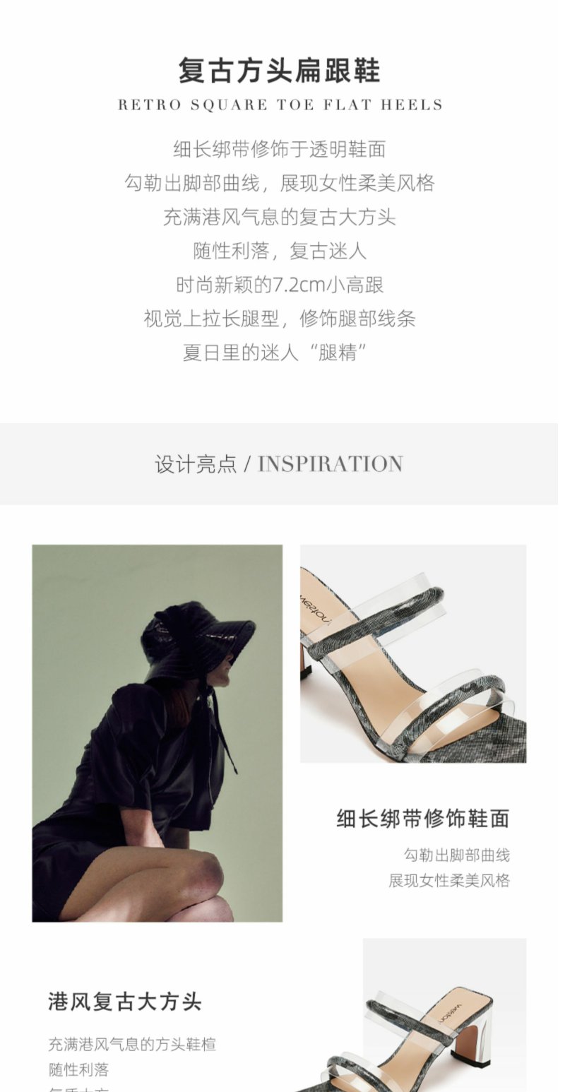 westory春夏新款拖鞋女尖头穆勒鞋潮流中跟鞋子女W281J50781
