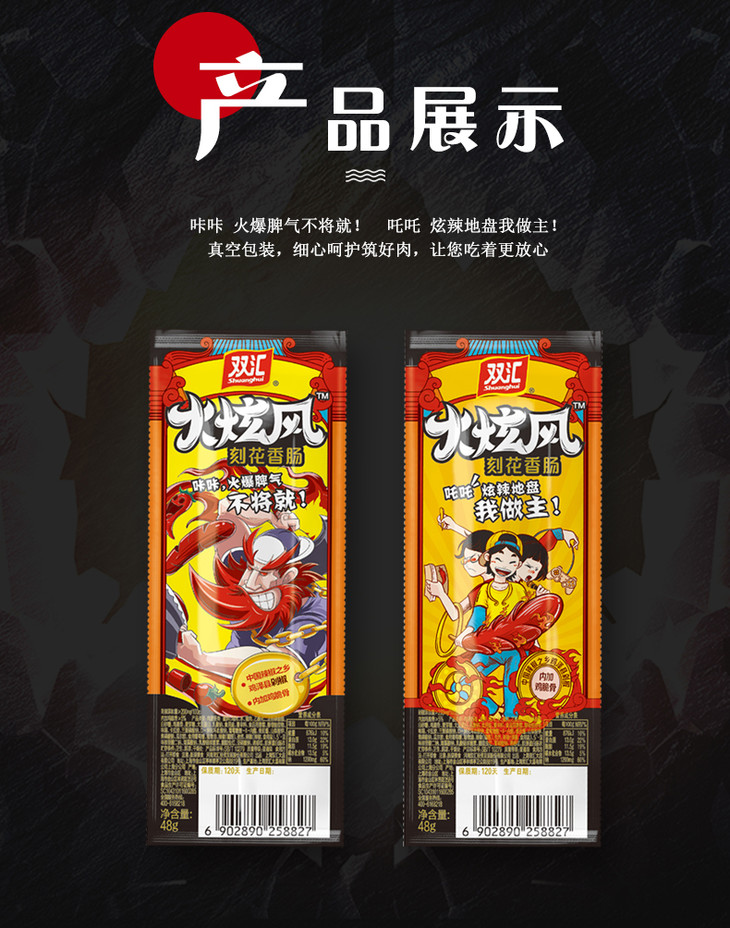 双汇火炫风刻花香肠48g*16支 即食肉肠 烧烤 火腿肠 休闲零食小吃