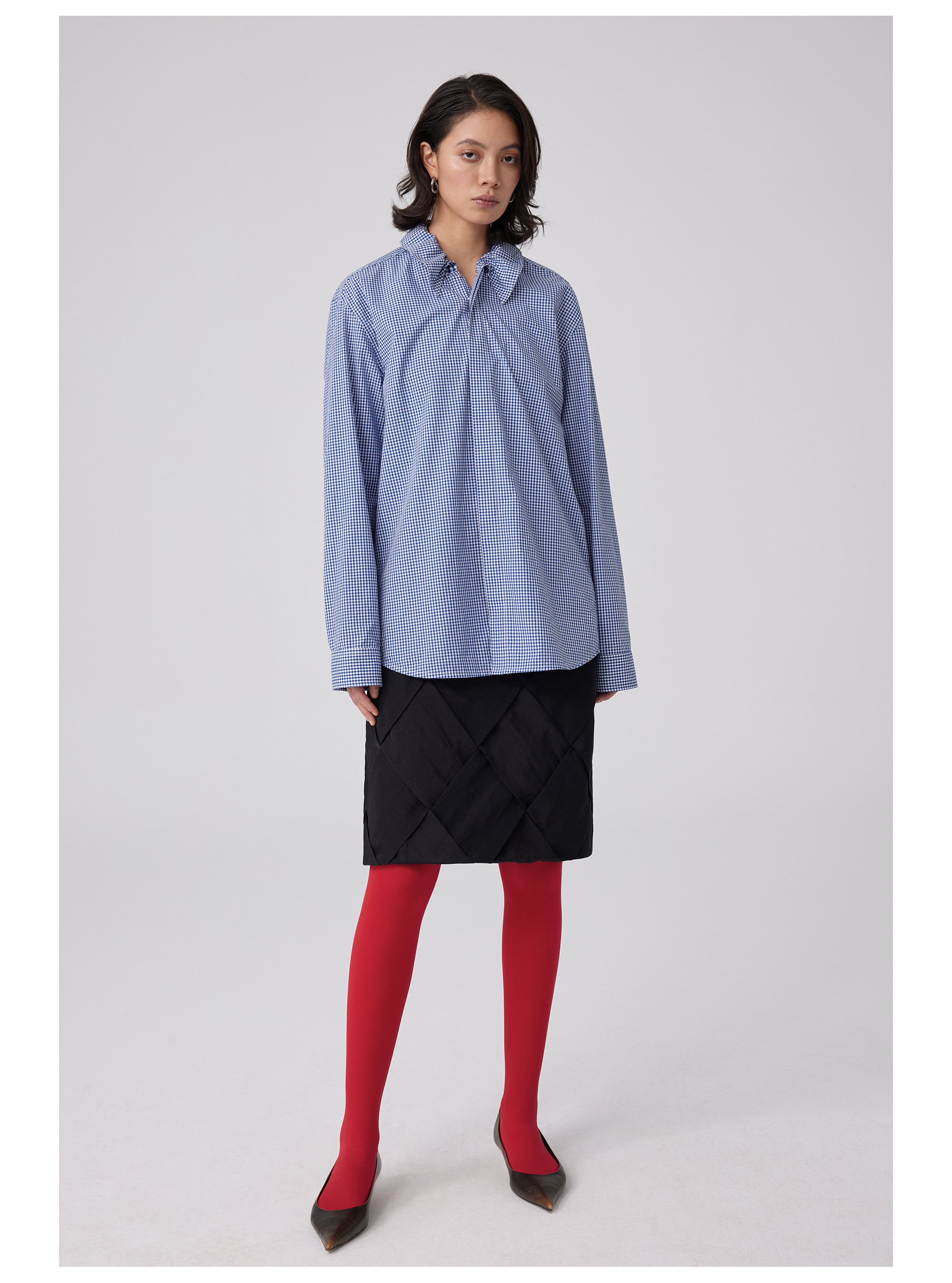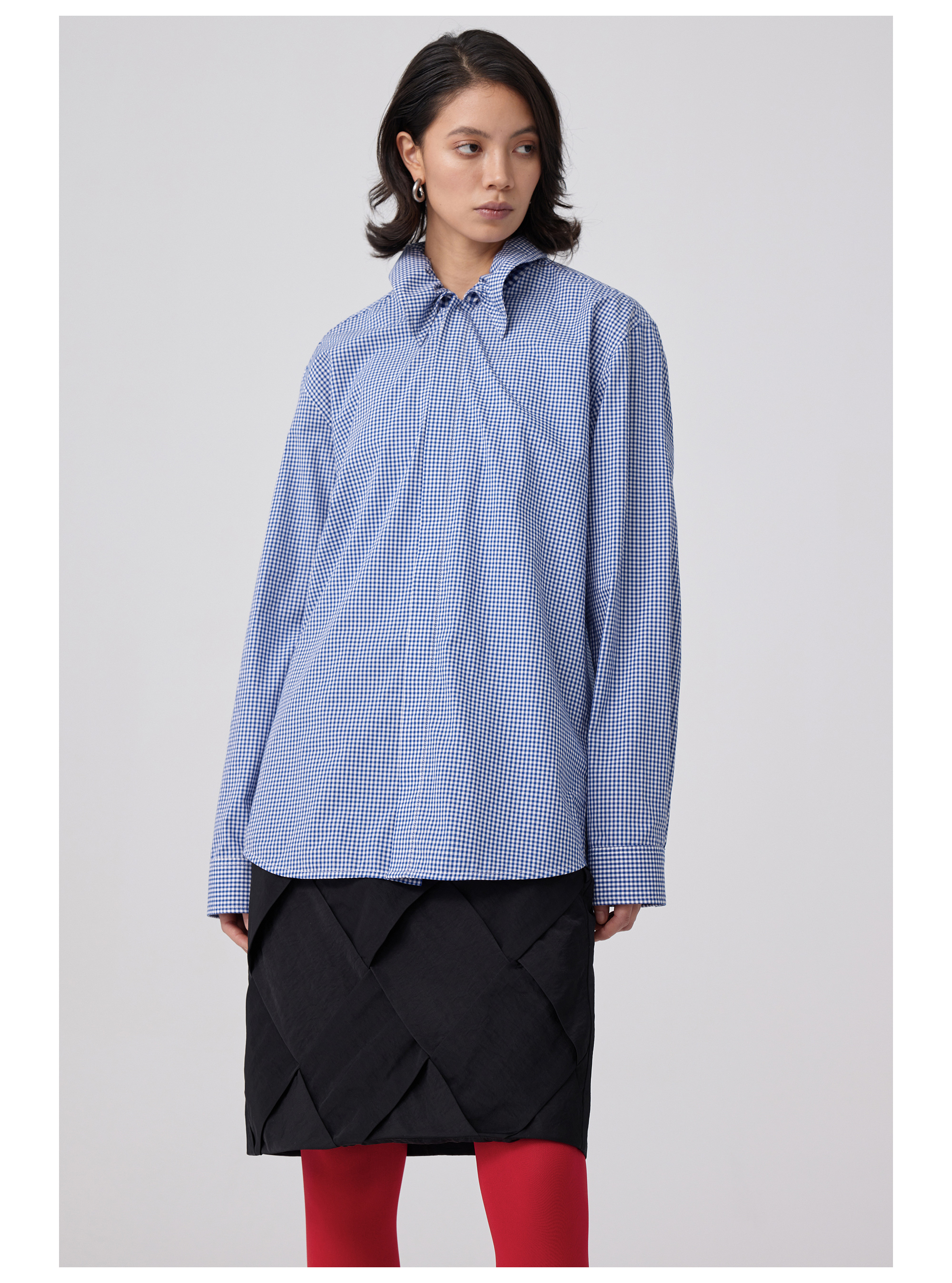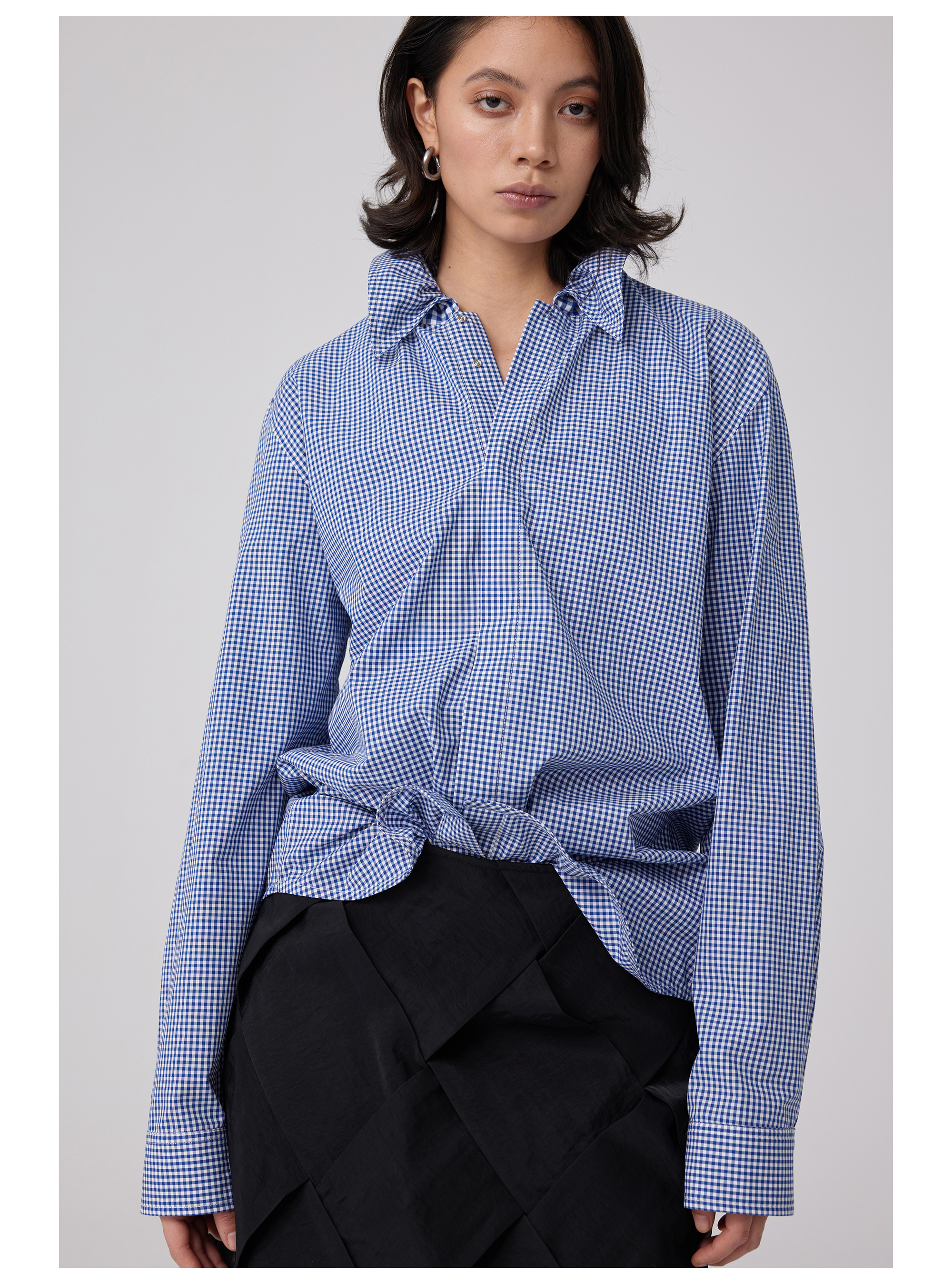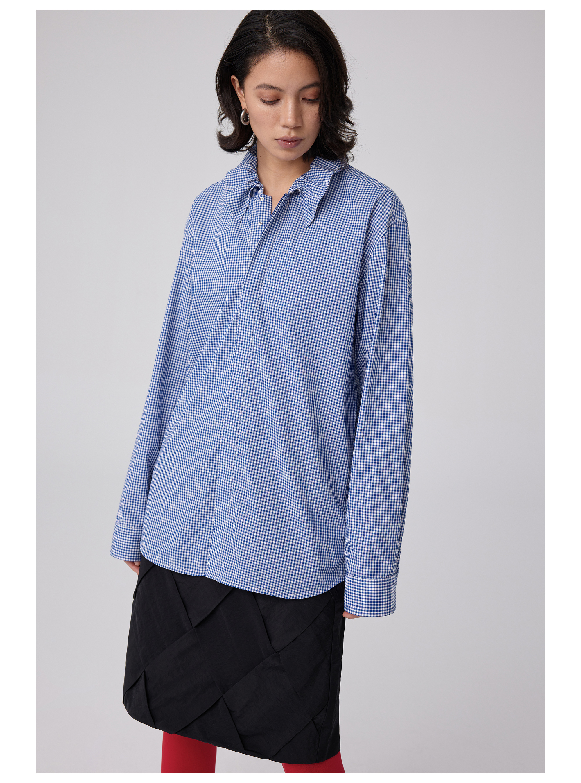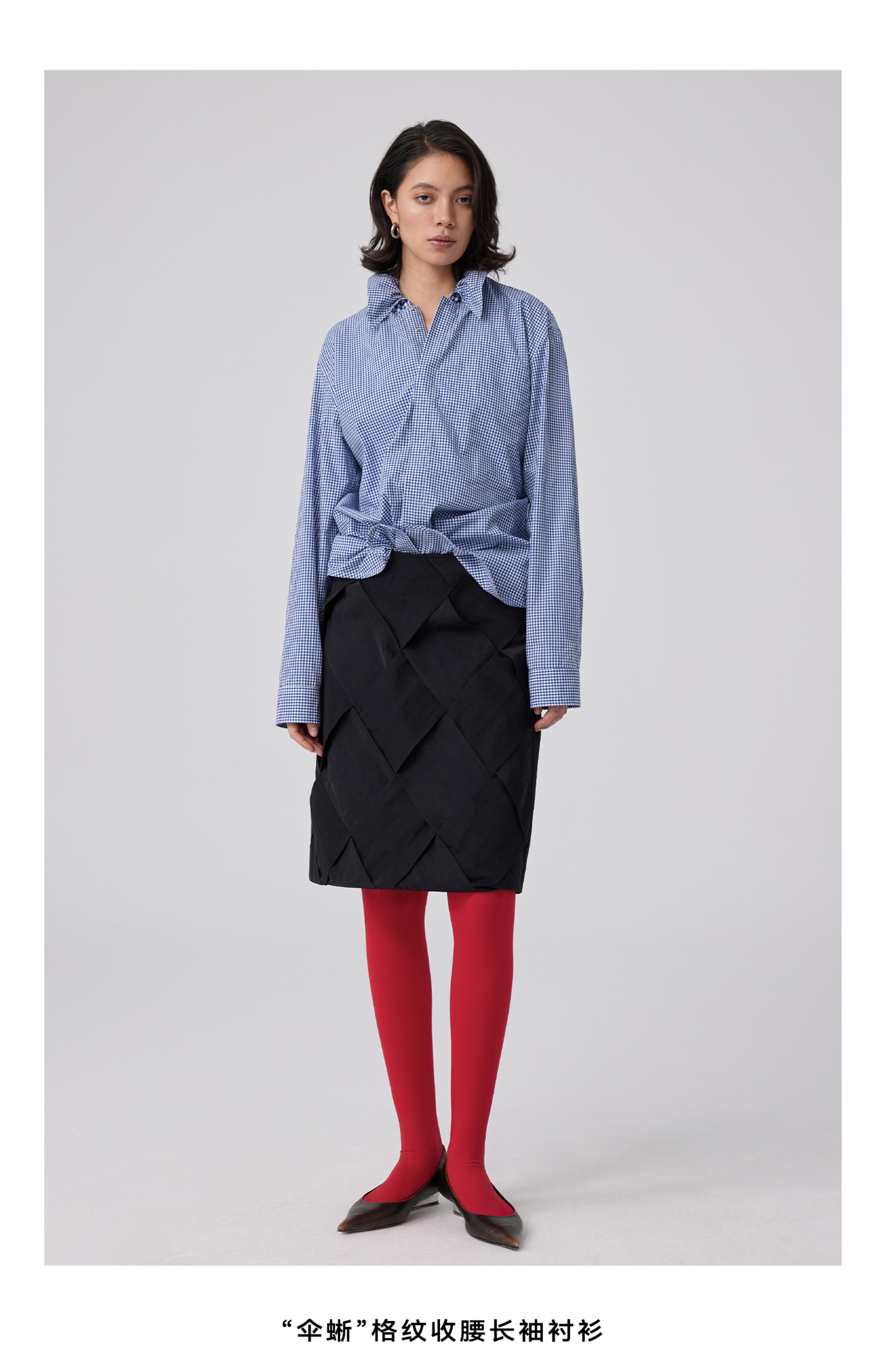 Simple Project/Y2563/“伞蜥”格纹收腰长袖衬衫